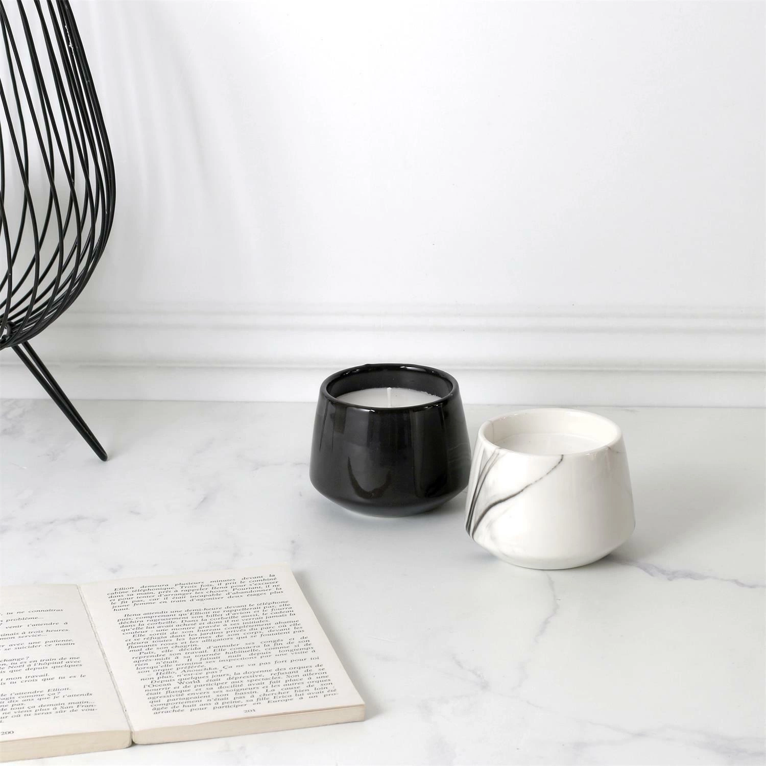 Vonná svíčka Marble S černá Intesi je moderní dekorace z parafínového vosku o rozměrech 6,5 cm na výšku a 8,5 cm v průměru. Zaujme elegantním mramorovým vzorem a hlubokou, matnou černí, která skvěle zapadne do glamour i moderních interiérů. Spojení výrazného designu s jemnou vůní dělá ze svíčky nejen zdroj světla, ale také jedinečný prvek, který podtrhne charakter vašeho domova.