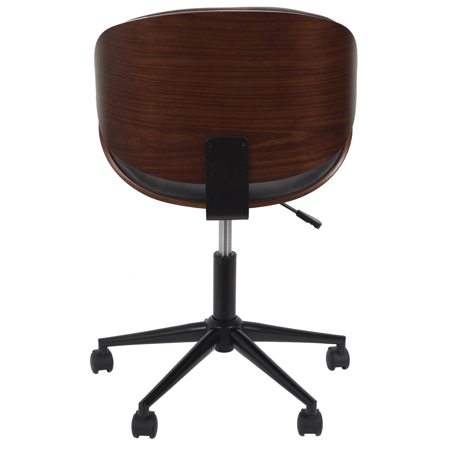 Model Reno zaujme minimalistickým, industriálním vzhledem a pečlivě sladěnými barvami. Tmavě hnědá ekologická kůže působí elegantně a snadno se udržuje v čistotě, takže židle si dlouho zachová atraktivní vzhled. Opěradlo a sedák jsou vyrobeny z tvarované dřevěné překližky, která poskytuje správnou oporu zad a podporuje zdravé sezení. Otočný mechanismus a základna na 5 kolečkách umožňují snadný pohyb u pracovního stolu bez nutnosti vstávání.