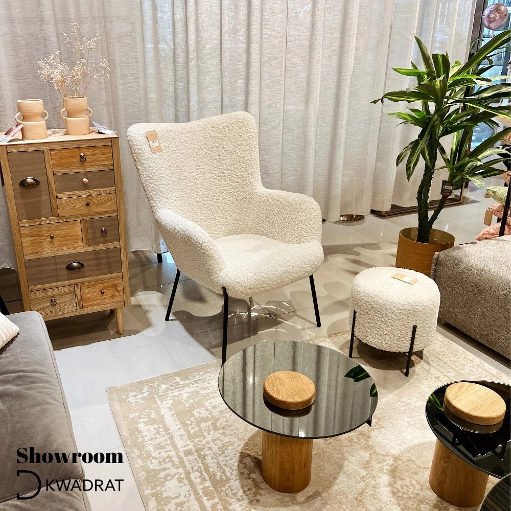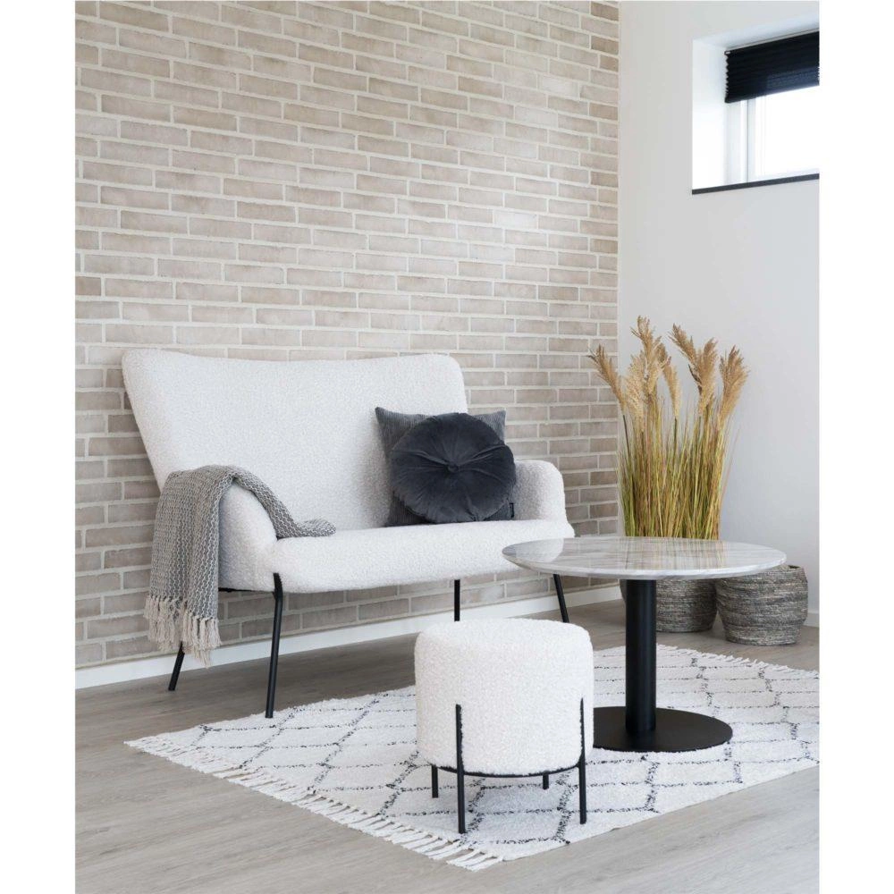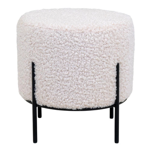 Pufa Alford zaujme nejen svým vzhledem, ale i praktičností. Potah z teddy látky – často označované jako „beránek“ – zaručuje výjimečnou hebkost a jemný lesk, díky čemuž dodá vašemu interiéru útulný a trendy akcent. Kulatý tvar a bílá barva dokonale zapadnou do moderních aranžmá, kde vnesou lehkost a eleganci. Čtyři štíhlé černé kovové nohy zajišťují stabilitu a vytvoří působivý kontrast, který podtrhne charakter nábytku.