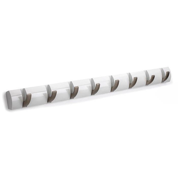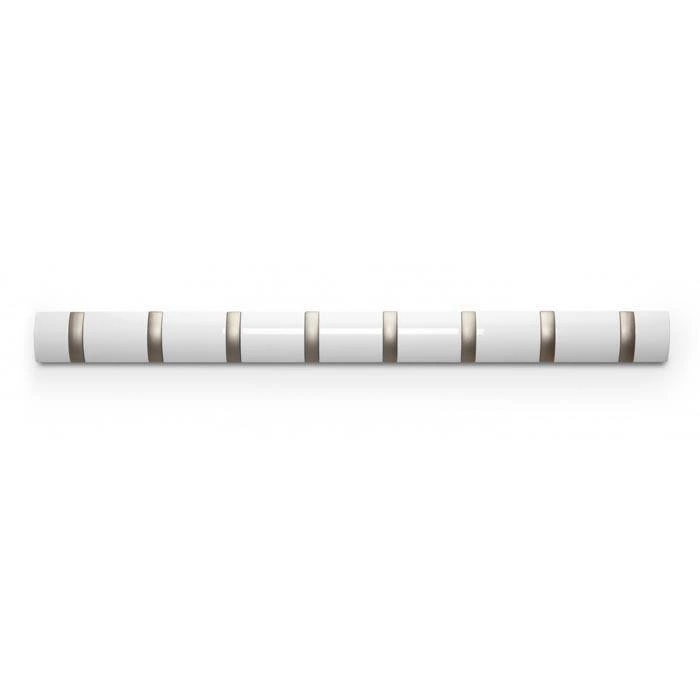 Nástěnný věšák Umbra Flip Hook 8 v bílé barvě je dokonalým spojením moderního minimalismu a mimořádné funkčnosti. Precizně zpracovaný, vybavený 8 pevnými výklopnými háčky, které vám jednoduše pomohou uspořádat prostor v předsíni, šatně nebo kanceláři. Díky šířce až 81 cm je věšák ideální i do větších místností a nabízí maximální nosnost až 16 kg – pohodlně na něj zavěsíte bundy, kabáty i tašky celé rodiny.
