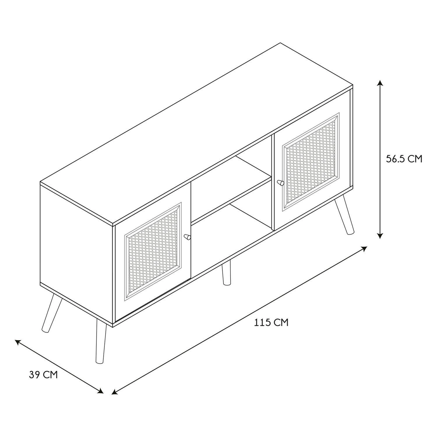 RTV skříňka Bali zaujme lehkým a originálním vzhledem inspirovaným přírodními materiály a exotickou atmosférou. Pletený přední panel jemně podtrhuje boho styl a dodává nábytku útulnost i jedinečný charakter. Hnědá TV skříňka se skvěle hodí jak ke světlým, tak tmavším odstínům stěn a snadno ji sladíte s různými doplňky. Moderní, štíhlé nožky zajišťují celému kusu vzdušnost a nábytek působí v každém odpočinkovém prostoru opravdu elegantně.