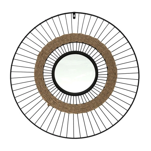 Kulaté zrcadlo Miremba od značky Intesi představuje výjimečný dekorační prvek, který skvěle doplní moderní i industriální interiéry. Kulatý tvar o průměru 60 cm, pevný černý kovový rám a decentní akcenty přírodních materiálů tvoří harmonický celek, ideální k zavěšení do předsíně nebo obývacího pokoje. Toto závěsné zrcadlo nejen opticky zvětší prostor, ale také dodá interiéru osobitý charakter a styl boho.