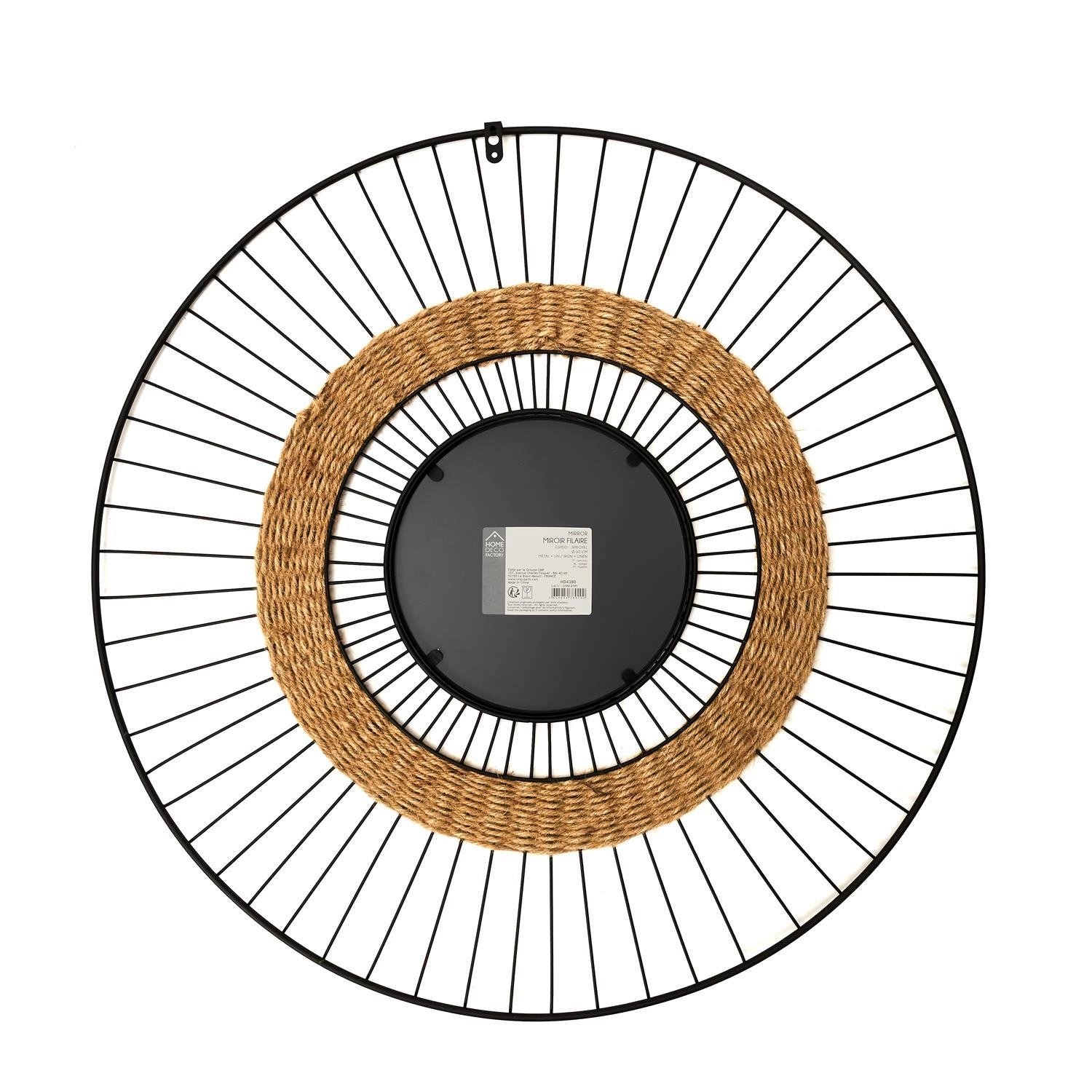 Minimalistické zrcadlo s industriálním kovovým rámem v sobě spojuje prvky moderny s nádechem boho atmosféry. Tato neobvyklá kombinace vytváří jedinečný efekt. To vše díky ozdobnému slaměnému opletu, který narušuje strohý vzhled kovového rámu.Kulaté zrcátko je ukryto v rámu a připomíná kolo jízdního kola. "Špice" zrcátka jsou natřeny černou barvou. Intenzivní černá dokonale ladí s přírodní barvou slaměného copu. Zrcadlo má háček k zavěšení na zeď. Miremba bude skvělým doplňkem chodby, ložnice nebo obývacího pokoje. Tyto zdánlivě nesourodé prvky vytvářejí disciplinovaný a originální celek, díky němuž se design Miremba hodí do loftových i boho interiérů