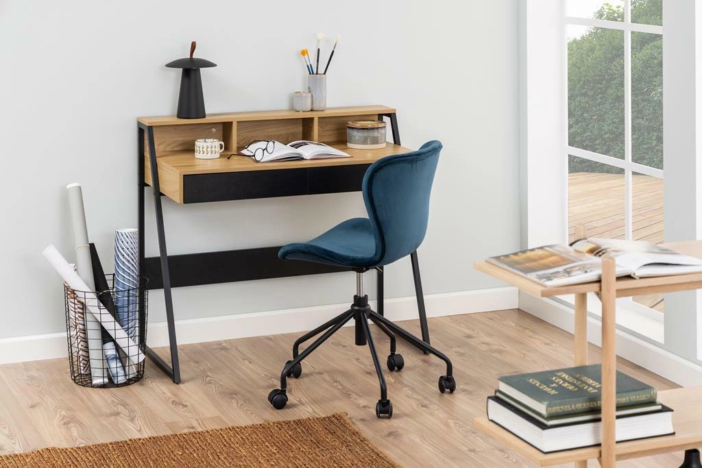 Psací stůl Reece od značky Actona je kompaktní skandinávský stůl s nástavcem a zásuvkami, ideální pro práci i studium v moderních interiérech. Model o šířce 100 cm spojuje efektní hnědou desku s černou kovovou podnoží a nabízí praktická řešení pro domácí kancelář, studentský pokoj nebo pracovnu. Dvě prostorné zásuvky a funkční nástavec s otvorem na kabely umožňují pohodlné uložení věcí a udržení pořádku na pracovní ploše.