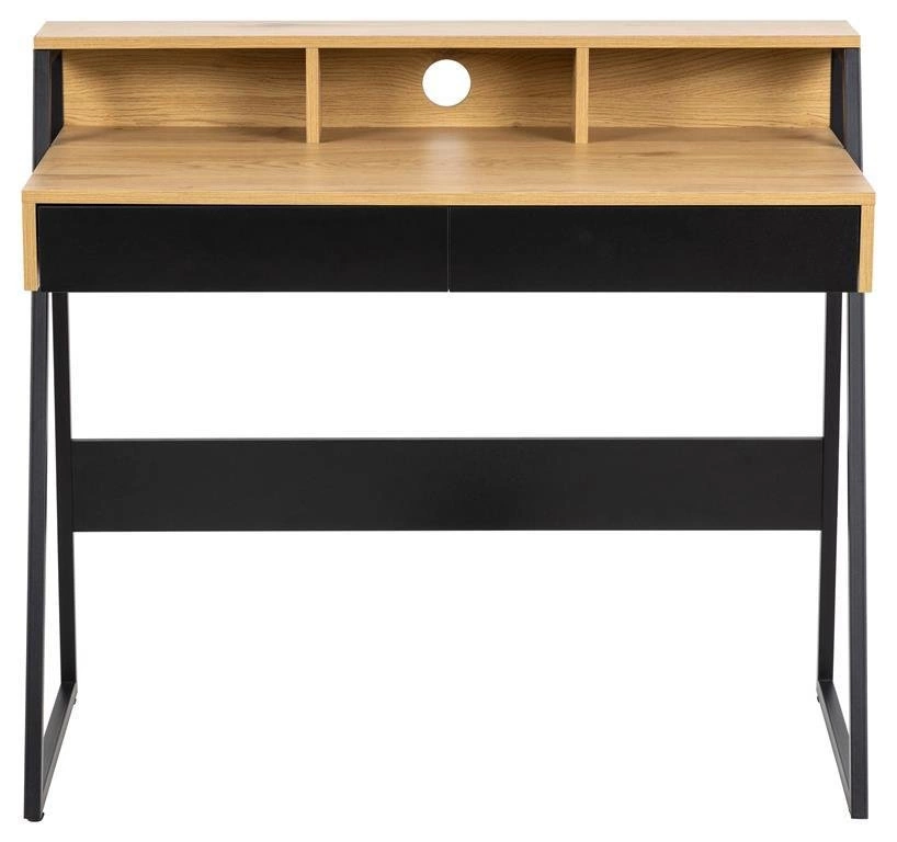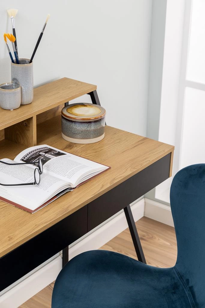 Stůl se zásuvkami a nástavcem umožňuje udržet pořádek na pracovišti a snadno uložit dokumenty, psací potřeby i elektroniku. Kulatý otvor na kabely v nástavci poskytuje pohodlné zapojení zařízení bez zamotaných drátů. Kompaktní rozměry zároveň znamenají, že tento malý psací stůl snadno najde své místo i v menších bytech.