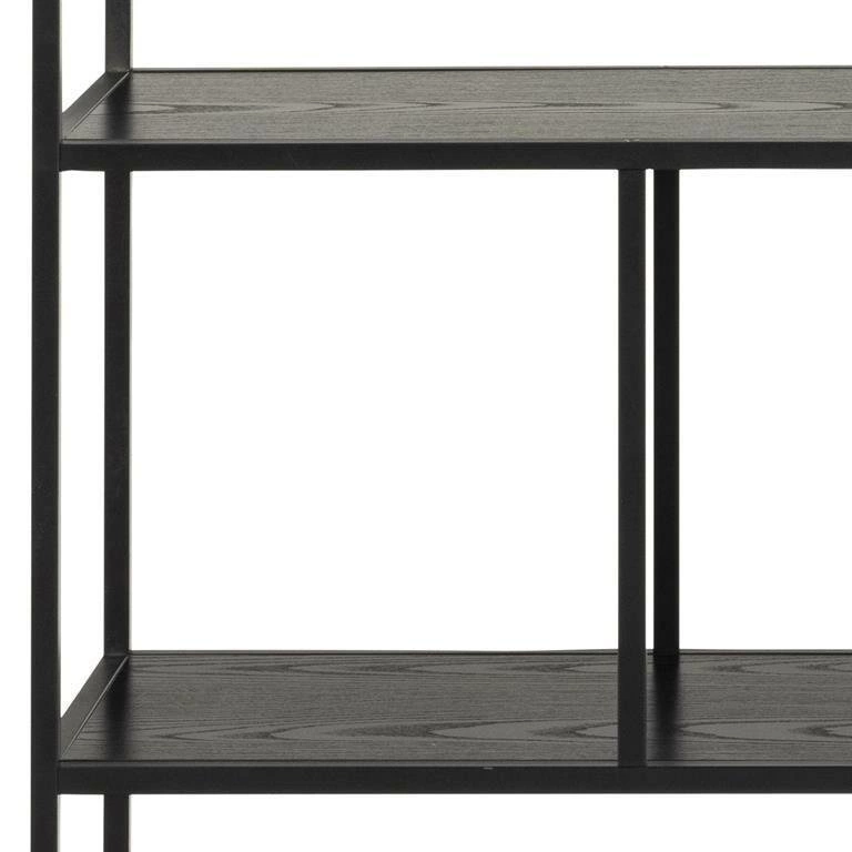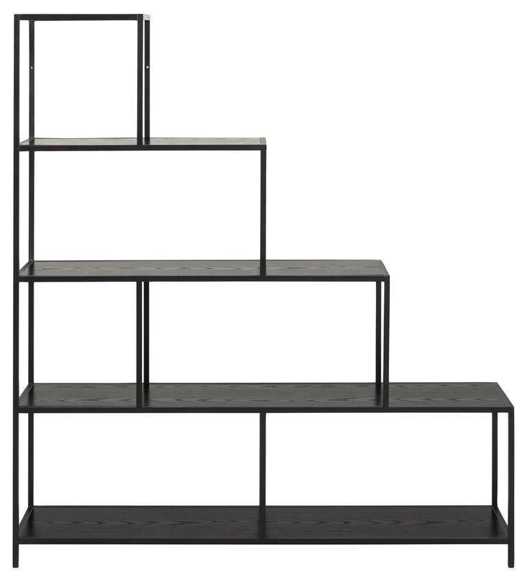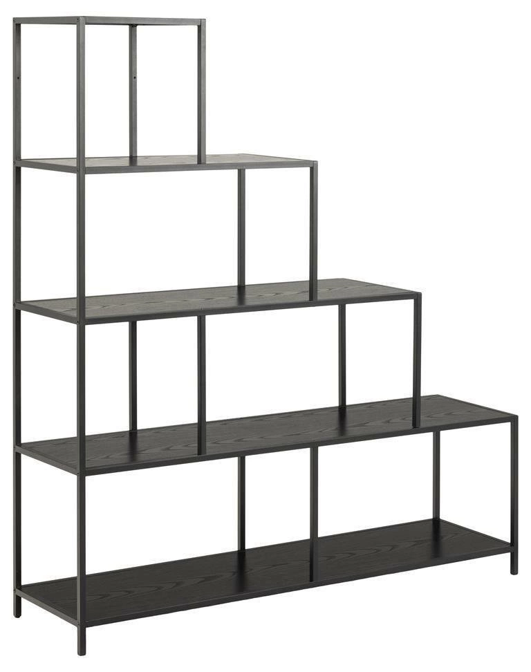 Originální geometrická konstrukce regálu Seaford jej odlišuje od běžných knihoven. Schodové uspořádání polic umožňuje kreativně využít dostupný prostor – bez problémů na něj umístíte velké fotoalba, menší knihy, pokojové rostliny nebo suvenýry z cest. Černý povrch perfektně zapadá do industriálního trendu a dodává interiéru výraz a moderní vzhled.