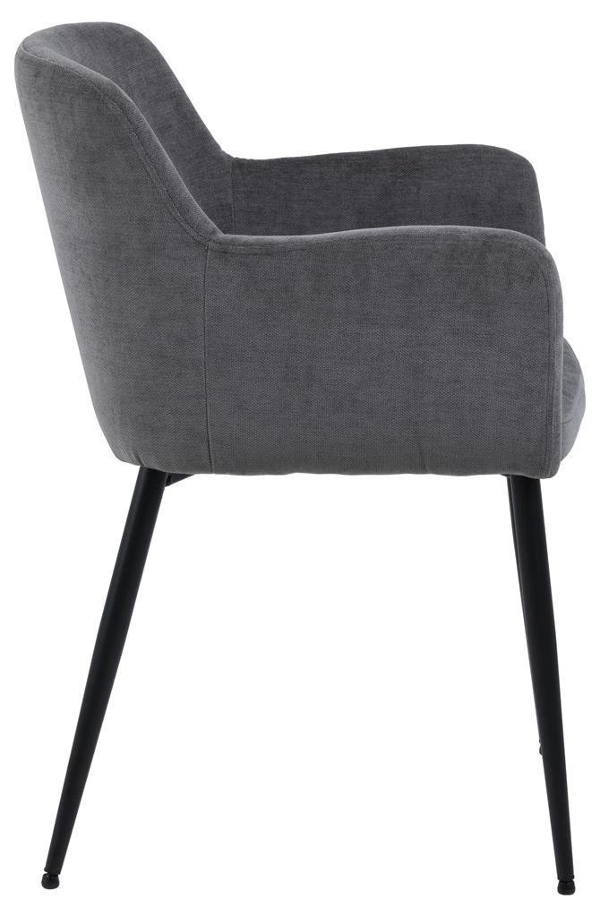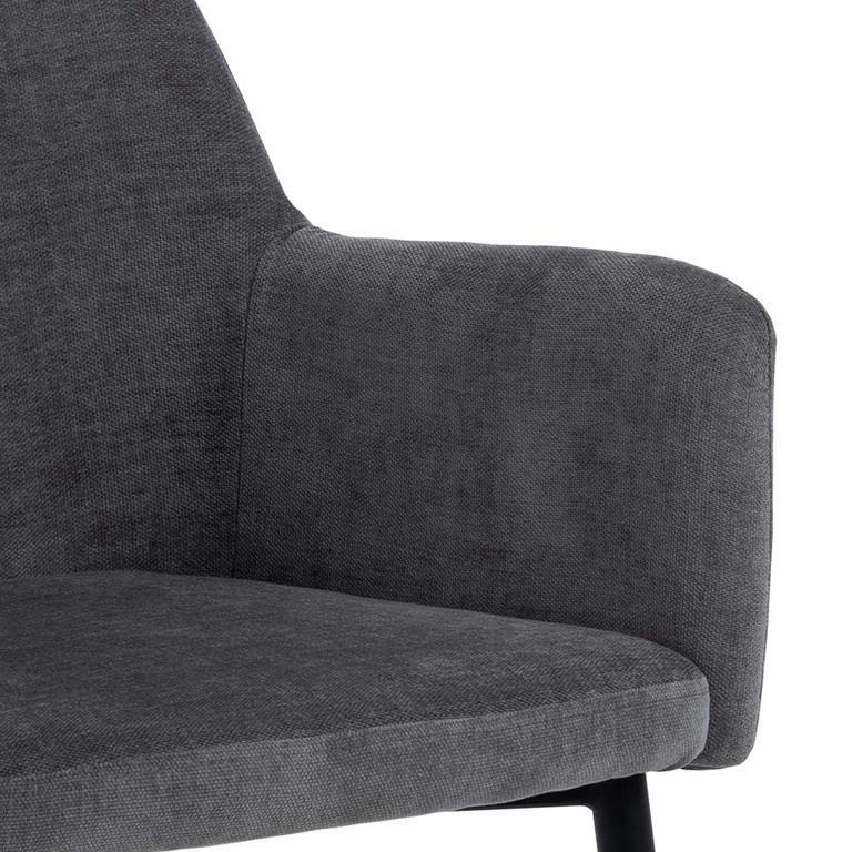 Jídelní židle Karen od značky Actona je moderní, čalouněná židle z veluru v šedém odstínu, vybavená pohodlnými područkami. Kbelíkový tvar sedáku, měkká výplň a stabilní kovová podnož v černé barvě zajišťují, že tento model perfektně vynikne nejen v jídelně, ale také v moderním obývacím pokoji nebo kuchyni. Optimální rozměry – šířka 54,5 cm, hloubka 56 cm a výška sedáku 47,5 cm – garantují pohodlí i při dlouhých posezeních u stolu.