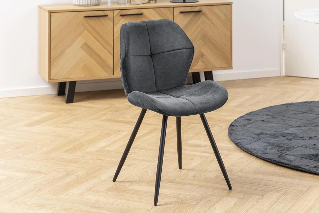 Židle Petri je ideální volbou pro ty, kdo si potrpí na moderní zařízení a výrazné tvary. Geometrické linie sedáku a opěradla upoutají pozornost a podtrhují osobitý styl vaší jídelny nebo obýváku. Antracitová látka spolu s černými, štíhlými nohami tvoří harmonický, minimalistický celek, který skvěle zapadne do interiérů inspirovaných loftovým nebo industriálním stylem.
