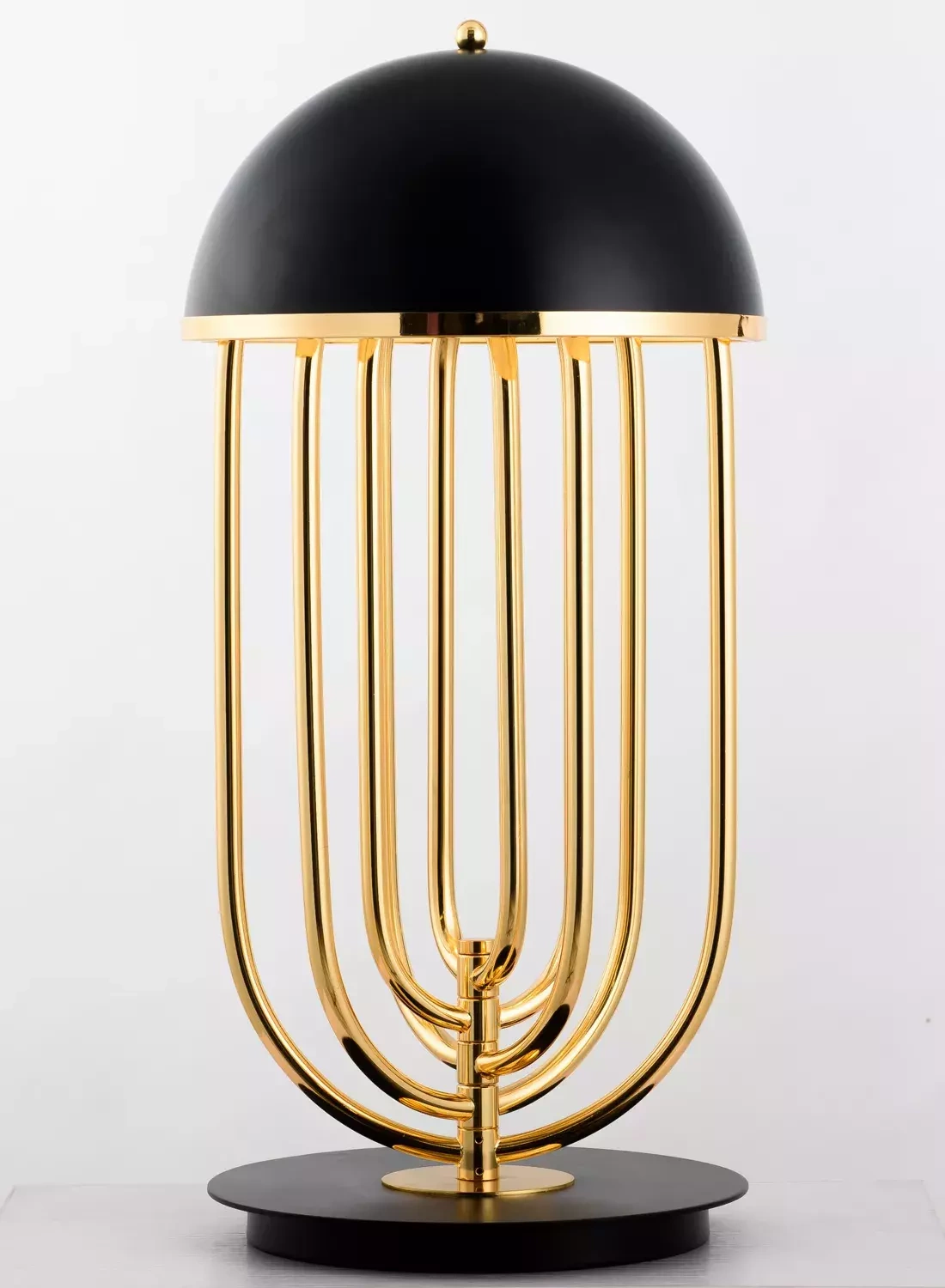 Stolní lampa Dolce Vita od Step into Design je ztělesněním moderního stylu, který propojuje matnou černou s elegantním zlatem. Vyrobena z odolného kovu, se šířkou 30 cm a výškou 61 cm, zaujme pevnou konstrukcí a černým stínidlem. Napájena čtyřmi světelnými zdroji typu G9, je ideální jako stolní lampa do obývacího pokoje nebo ložnice a zajistí rovnoměrné, příjemné osvětlení.