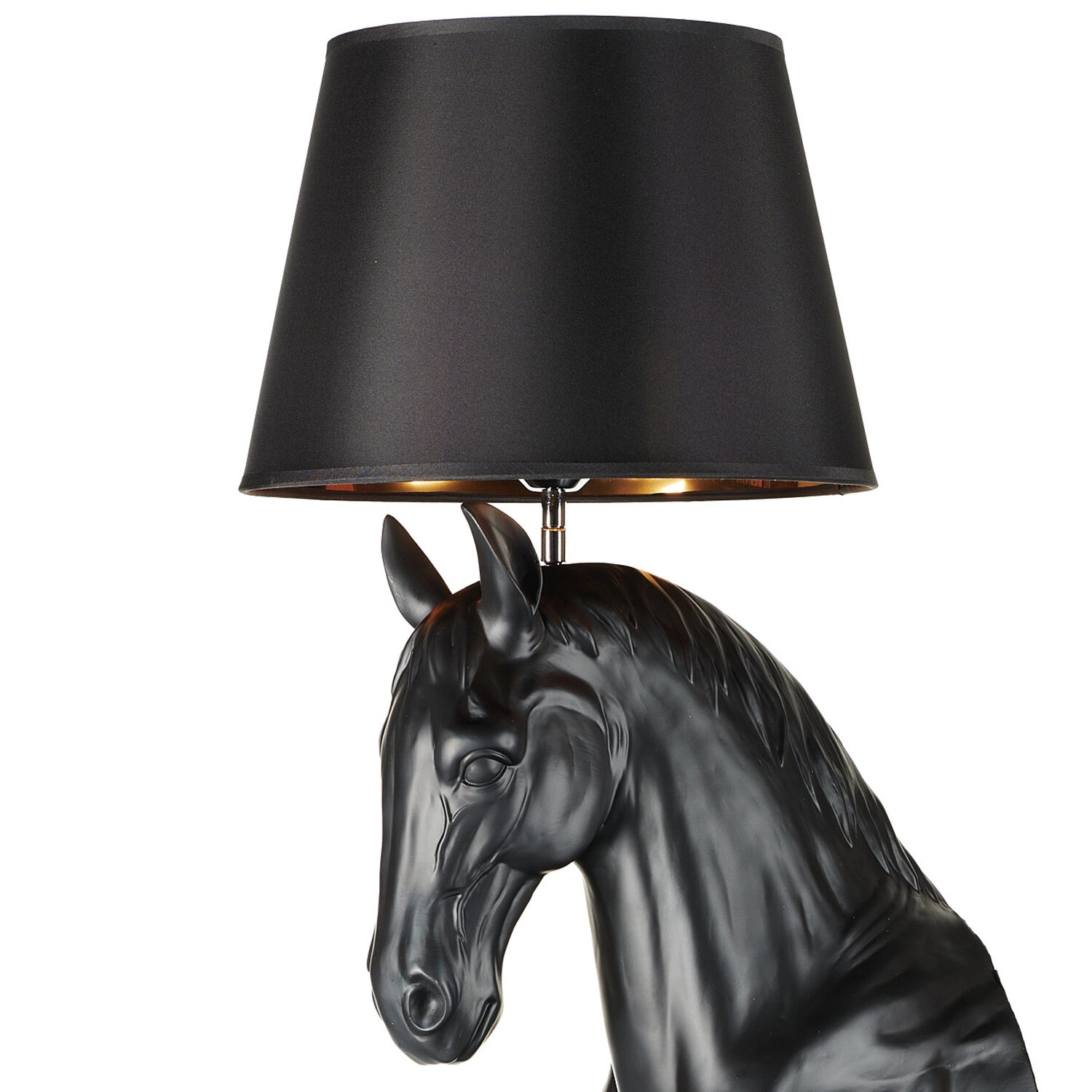 Stojací lampa KOŃ S černá od značky Step into Design je originální kombinací moderního designu a výrazného stylu. S výškou 115 cm, vyrobená z odolného sklolaminátu a textilu, zaujme sochařským torzem koně i elegantním černým stínidlem. Je ideální volbou pro ty, kdo hledají stojací lampu do obývacího pokoje, ložnice nebo domácí pracovny a chtějí vnést do interiéru jedinečný dekorativní prvek a funkční osvětlení.