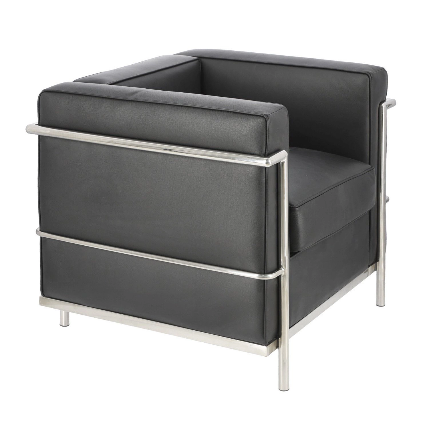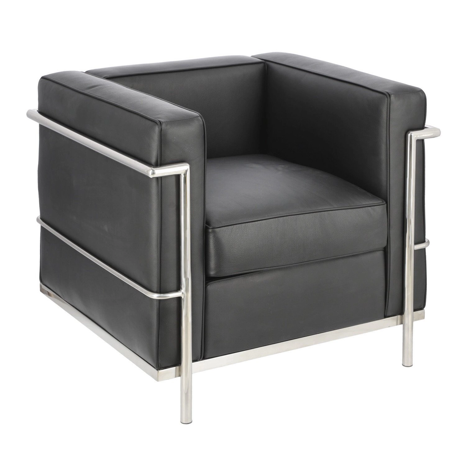 Relaxační křeslo Kubik černá pravá kůže moderní do obýváku inspirované LC2