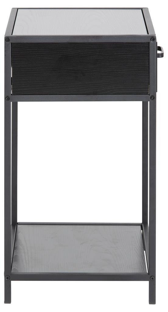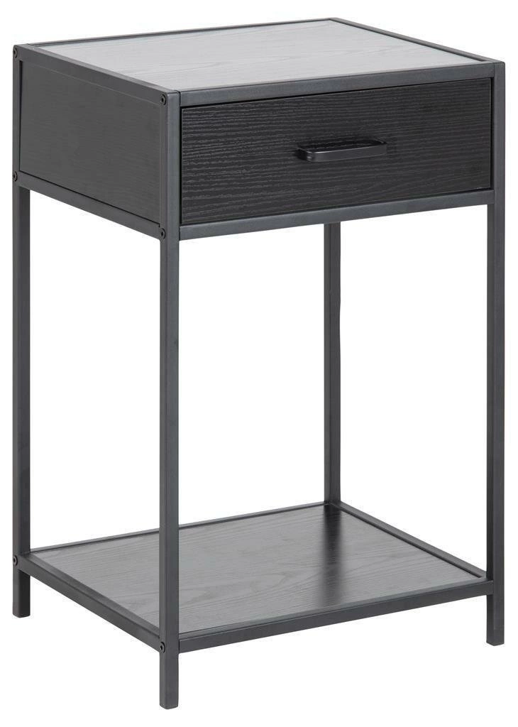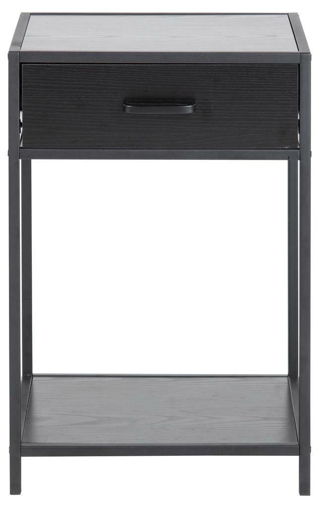 Černý noční stolek se zásuvkou 42 cm Seaford od značky Actona je spojení moderního designu a funkčnosti, ideální volba do ložnice v industriálním stylu. Stabilní kovová konstrukce, laminovaná horní deska a praktická zásuvka zajišťují, že tento model perfektně poslouží jako místo na všechny nezbytnosti vedle postele. Kompaktní rozměry – šířka 42 cm, výška 63 cm a hloubka 35 cm – dělají ze stolku Seaford skvělou volbu jak do menších, tak i prostornějších interiérů.