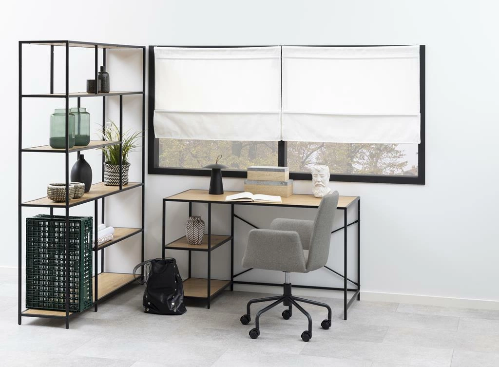 Seaford XIV je industriální regál, který zaujme svým moderním designem a surovou estetikou. Kombinace černého kovového rámu a polic v přírodním dubovém odstínu přitahuje pozornost a dodává interiéru jedinečný loftový charakter. Výrazné linie a otevřená konstrukce zajišťují, že nábytek působí lehce a nezatěžuje ani menší prostory. Díky tomu je regál ideální jak do prostorného obýváku, tak do domácí kanceláře či stylové pracovny.