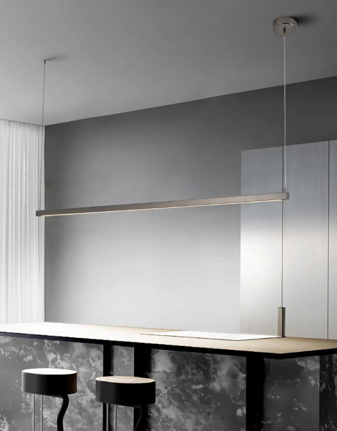 Originální, jednoduchá forma lišty a asymetricky umístěná rozeta jsou jemné detaily, které přitahují pozornost a podtrhují jedinečný charakter interiéru. Kabel o délce 200 cm umožňuje snadné nastavení výšky zavěšení, takže lampu přizpůsobíte výšce stropu i velikosti stolu. Šířka 80 cm zaručuje, že závěsná lampa BEAM-80 perfektně vynikne nad většími pracovními nebo jídelními plochami a zajistí optimální osvětlení celé místnosti.