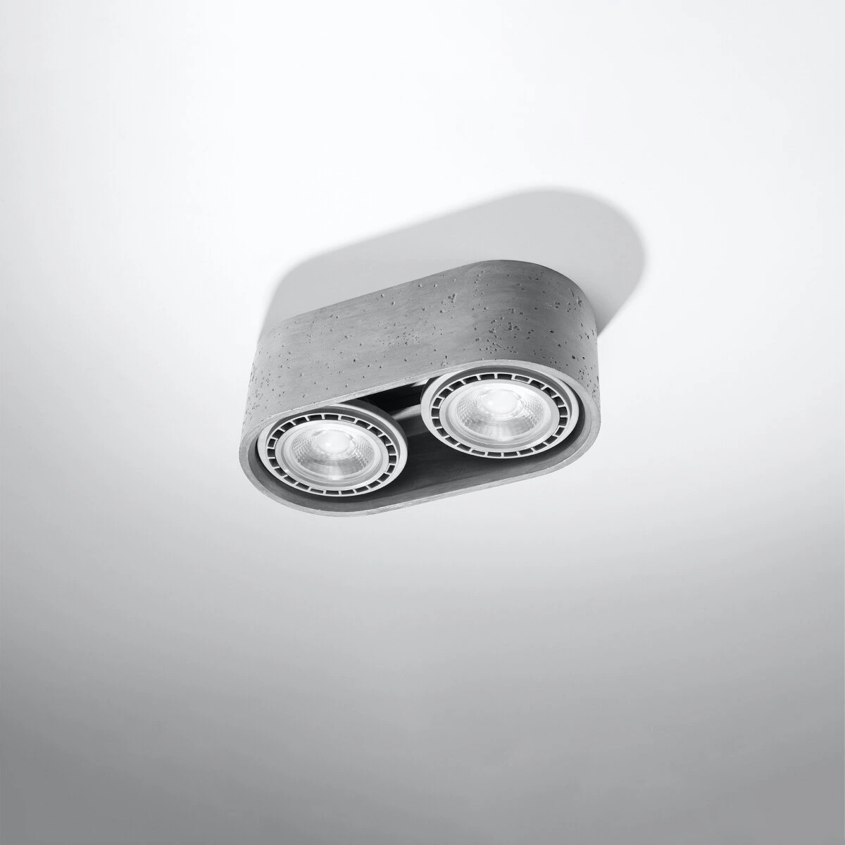 Díky dvěma paticím na žárovky GU10 s výkonem až 40W každá účinně osvítí BASIC 2 i větší místnosti, ať už jde o obývací pokoj nebo kuchyň. Nízká výška – pouze 9 cm – činí ze stropního svítidla perfektní řešení do prostor s omezenou výškou stropu, například v moderních apartmánech nebo menších pokojích. Nástěnná montáž je rychlá a pohodlná, zatímco pevný betonový materiál zaručuje dlouhou životnost a odolnost při každodenním používání.