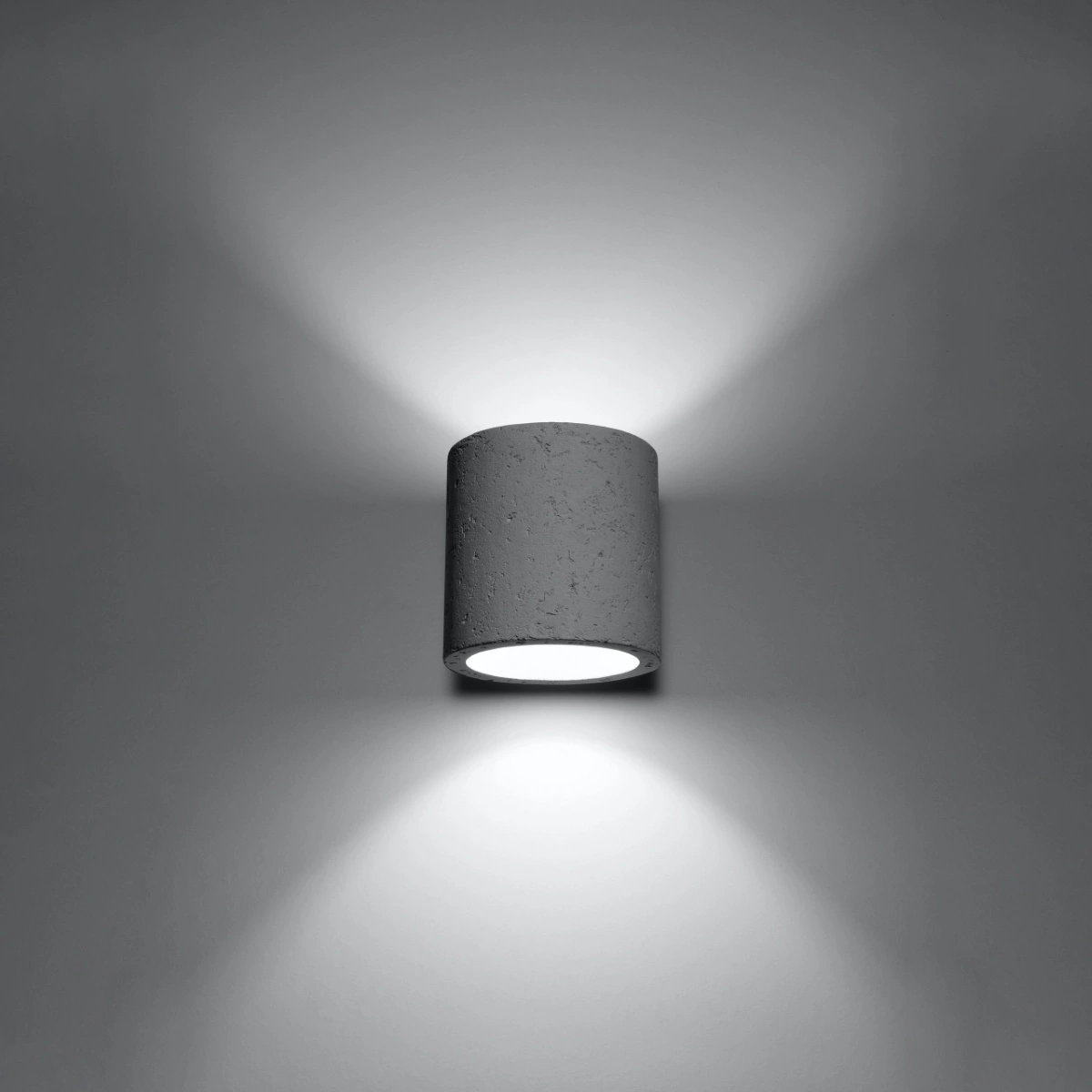 Nástěnné svítidlo ORBIS od značky SOLLUX je moderní nástěnná lampa vyrobená ze šedého betonu, která se skvěle hodí do obývacího pokoje, ložnice nebo jako svítidlo nad zrcadlo. Kompaktní rozměry – výška 10 cm, šířka 12 cm, hloubka 10 cm – z ní dělají univerzální řešení pro různé typy interiérů. Nástěnná lampa ORBIS spojuje minimalistický design s industriálním stylem a nabízí jemné, ale zároveň výrazné zónové osvětlení.