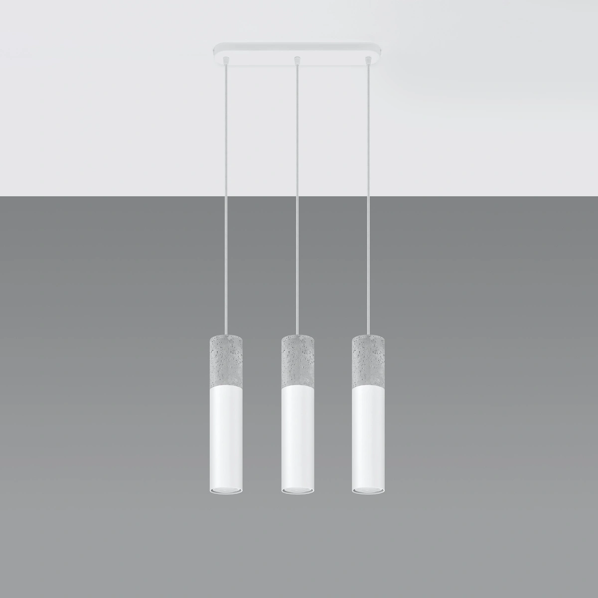 Závěsné svítidlo BORGIO 3L od SOLLUX LIGHTING je moderní volbou nad jídelní stůl i do kuchyně, která zaujme trojitým světelným zdrojem a minimalistickým, loftovým designem. Kombinace bílé barvy s hrubým cementem a kovem dodává lampě lehkost, zatímco štíhlý tvar (šířka 6 cm, délka 45 cm, výška 90 cm) se skvěle hodí jak do domácích interiérů, tak do komerčních prostor. Tři samostatné světelné body s paticemi GU10 umožňují přesné osvětlení vybraných zón a vytvářejí jedinečnou atmosféru nad kuchyňským ostrůvkem, jídelním stolem nebo v obývacím pokoji.