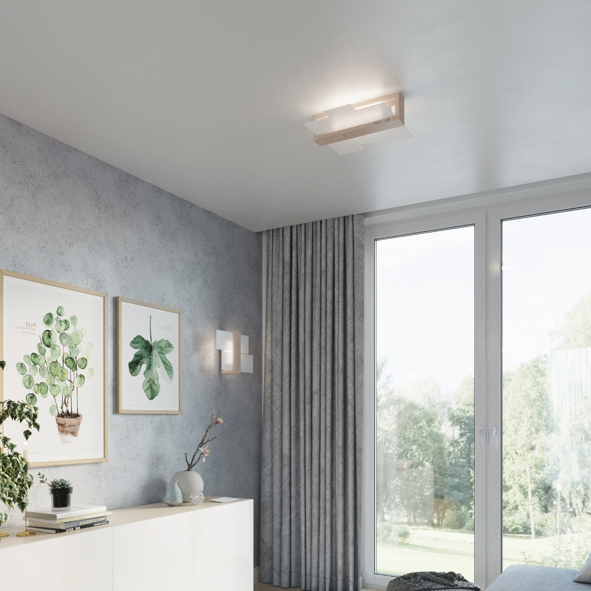 Dřevěný stropní plafon Feniks 2 od značky Sollux Lighting představuje moderní osvětlení o rozměrech 43×43×12 cm, které zaujme přírodním dřevěným provedením a jemným skleněným stínidlem. Tento plafon byl navržen speciálně pro obývací pokoj a ložnici – spojuje minimalistický design s praktičností. Nabízí dvě světelné zdroje typu E27 (každý až do 60W), což umožňuje přizpůsobit intenzitu světla individuálním potřebám. Ideální volba pro ty, kdo oceňují moderní styl a přírodní materiály v interiéru.