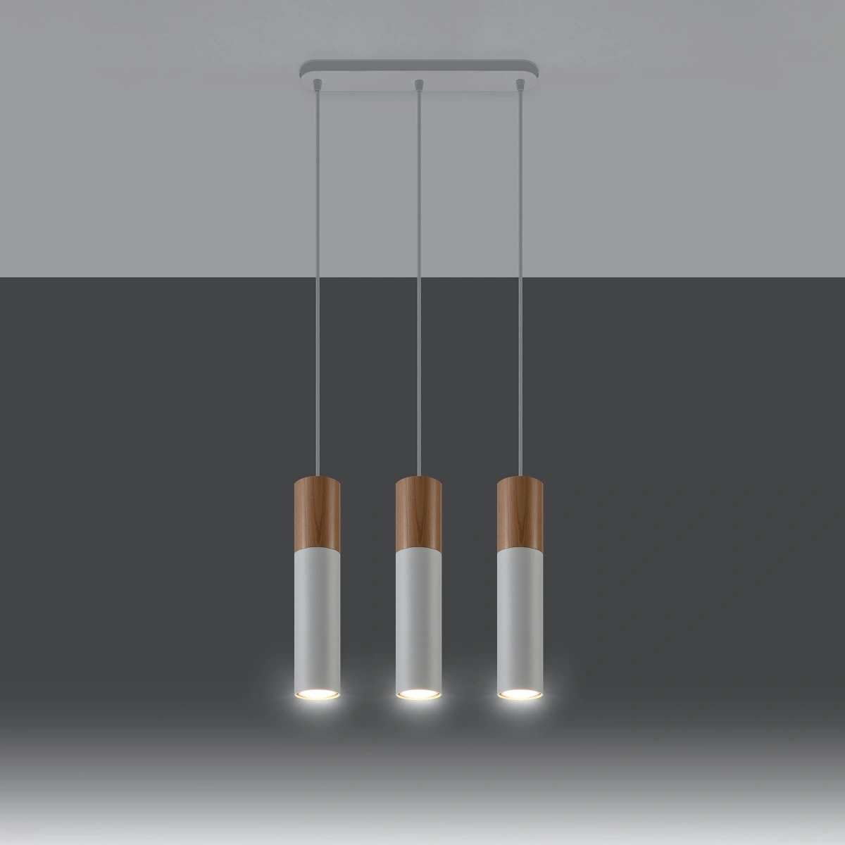 Závěsné svítidlo Pablo 3L od značky Sollux Lighting je spojením moderního designu, přírodního dřeva a nadčasové bílé barvy. Tento model tvoří tři cylindrické, bílé stínidla zavěšené na minimalistické liště z dřeva a kovu. Díky šířce 45 cm a nastavitelné výšce až 90 cm je toto stropní svítidlo ideální volbou nad jídelní stůl, do obývacího pokoje nebo jídelny – nabízí funkční bodové osvětlení a jemný, designový akcent.