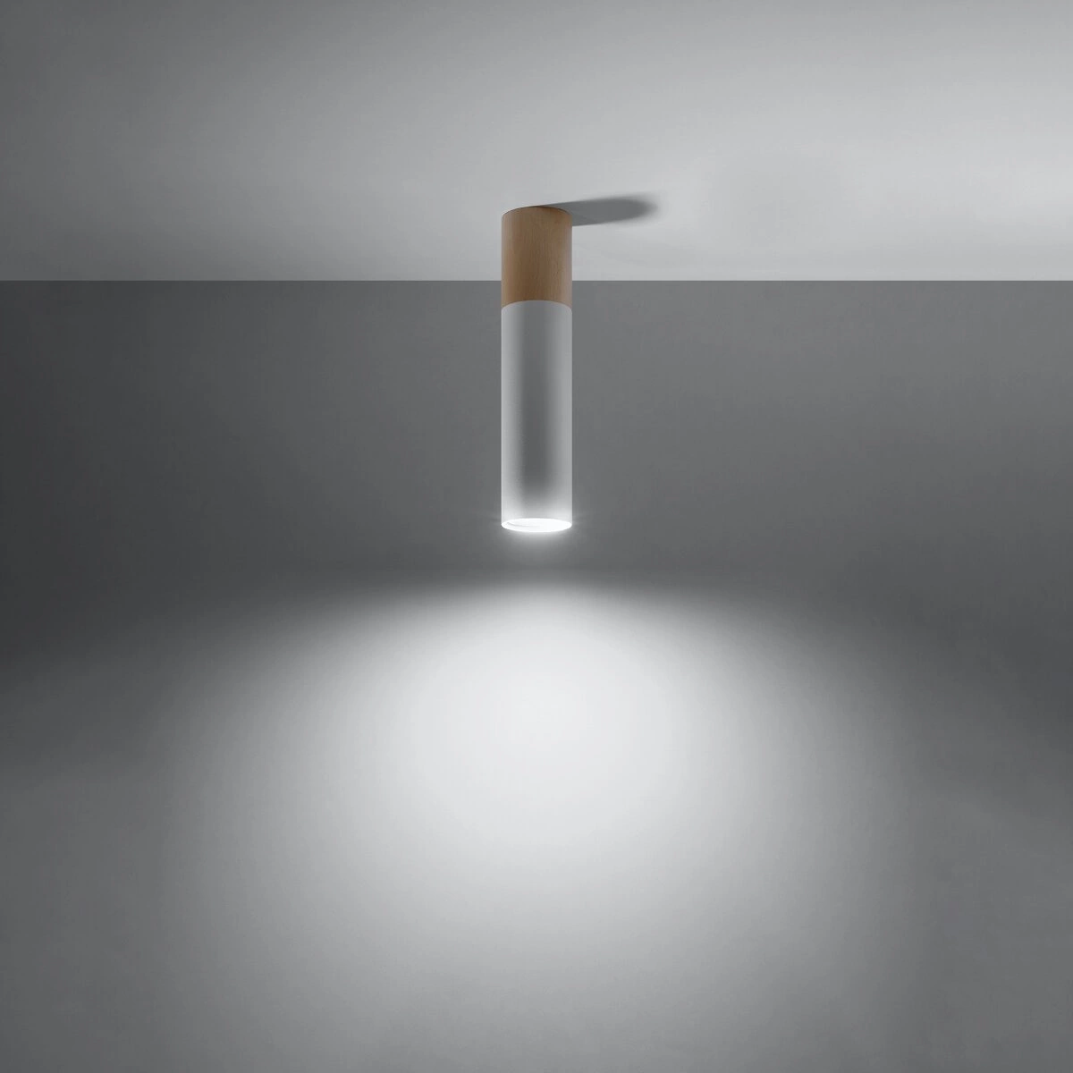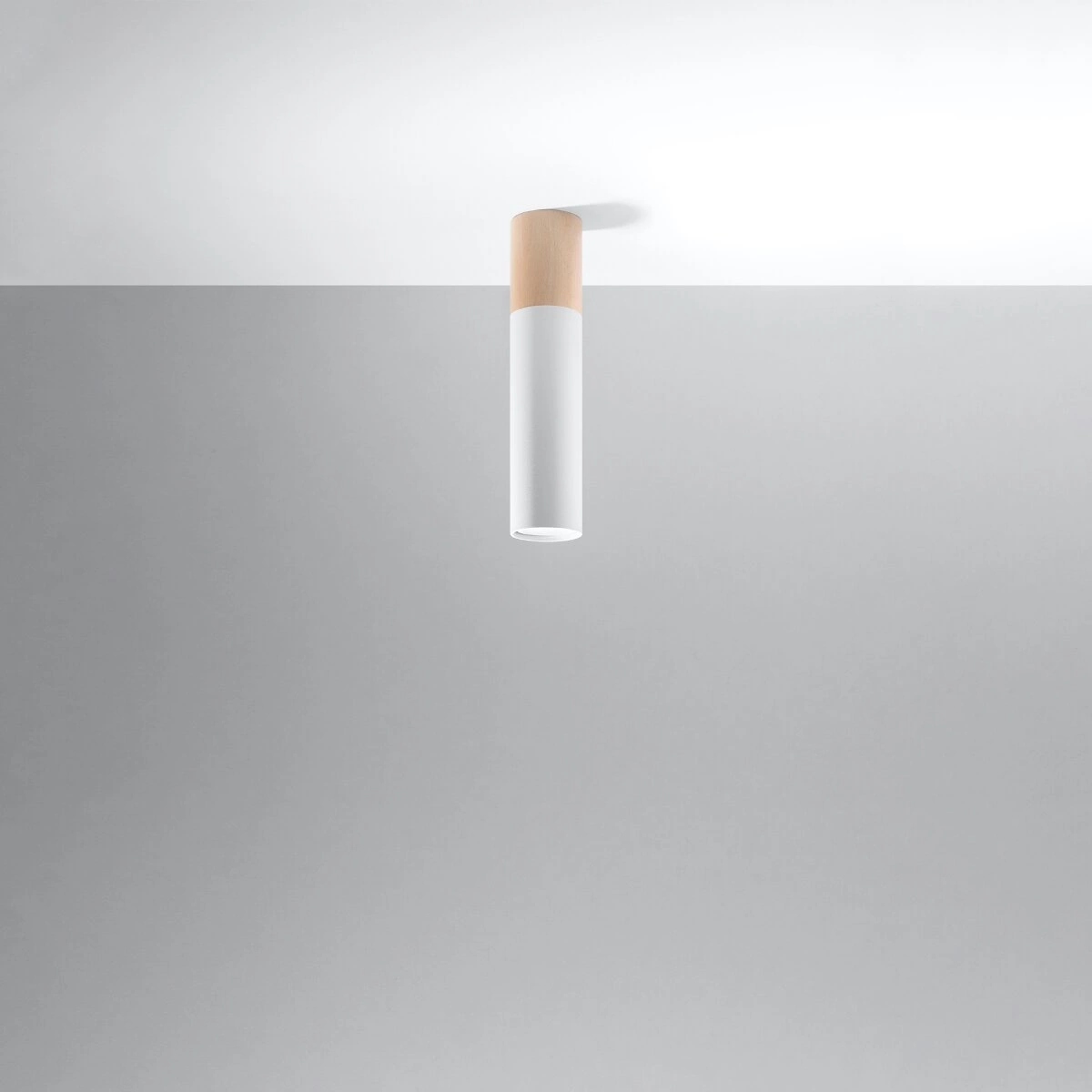 Moderní stropní plafon PABLO bílý dřevěný od značky Sollux je minimalistické stropní svítidlo, které dokonale kombinuje přírodní dřevo s bílým kovem. Jeho štíhlý, válcový tvar (výška 30 cm, šířka 6 cm) zdůrazňuje jednoduchost a eleganci, díky čemuž je nejen zdrojem světla, ale také decentním dekorativním prvkem. Plafon byl navržen s ohledem na moderní interiéry – skvěle se hodí do obývacího pokoje, ložnice nebo jídelny, kde vytváří útulnou atmosféru, aniž by dominoval celkovému uspořádání.