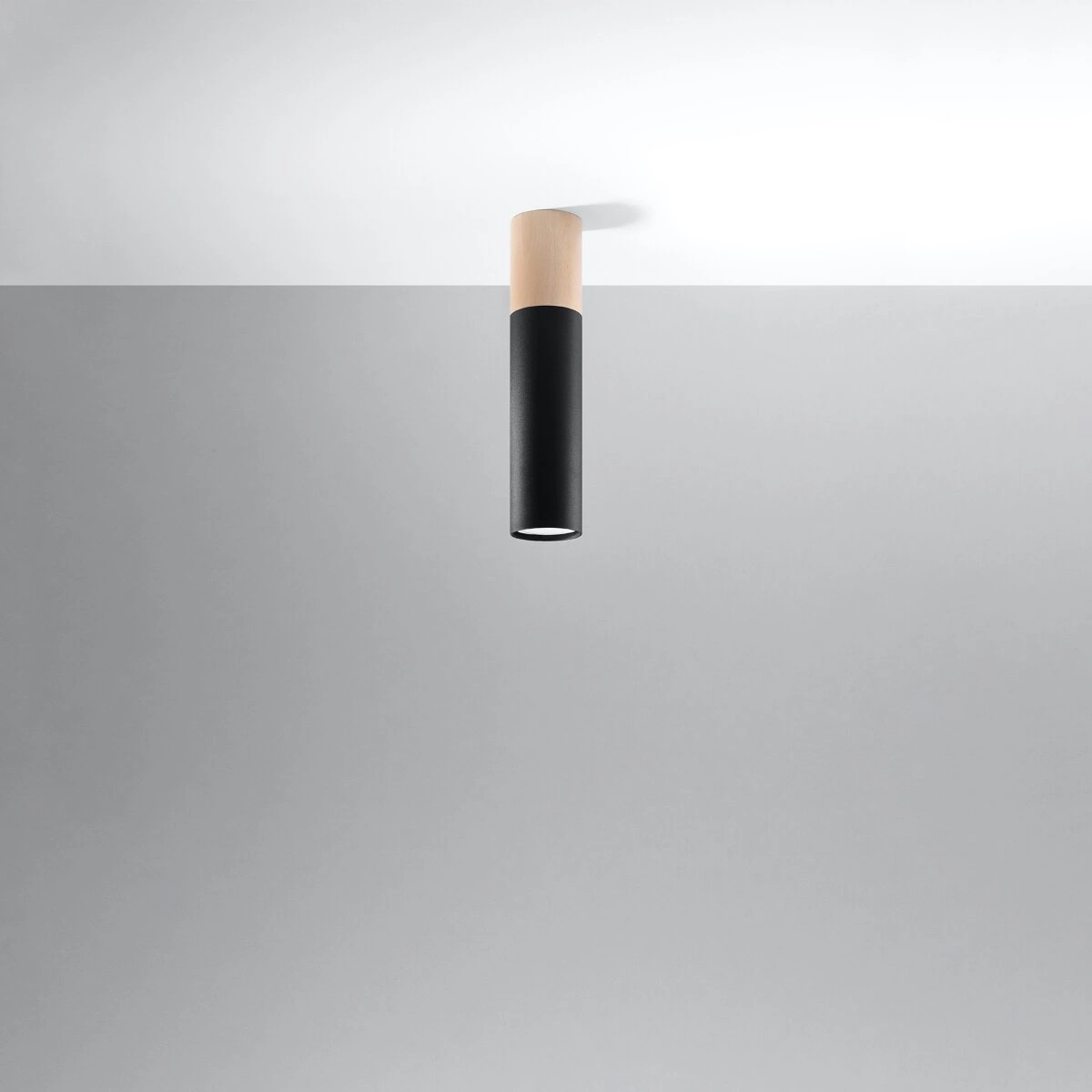 Plafon PABLO v černém provedení překvapí svou jednoduchou formou, která skvěle zapadne do moderních i industriálních interiérů. Spojení přírodního dřeva a kovu mu dodává jedinečný charakter a zdůrazňuje vytříbený vkus majitele. Štíhlý tvar tubusu nezatěžuje prostor, ale stává se nenápadným akcentem – jak v světlých, minimalistických aranžmá, tak v útulných, loftových obývacích pokojích či ložnicích.