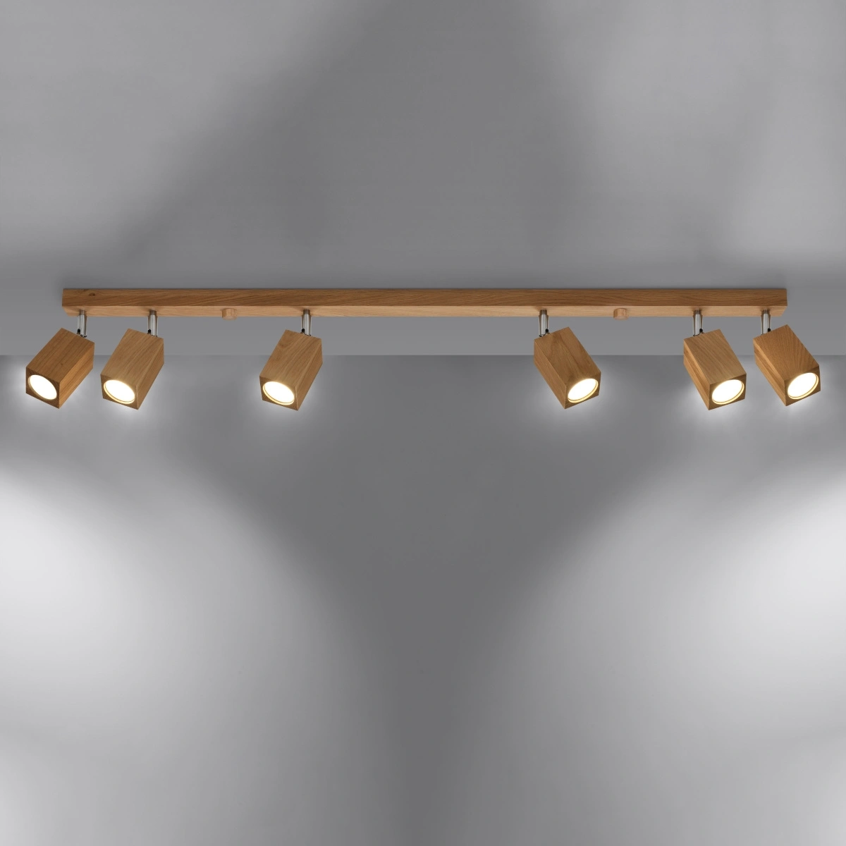 Dřevěný stropní svítidlo KEKE 6 dub od značky Sollux je ideální volbou pro milovníky přírodního designu a funkčních řešení do moderních interiérů. Vyrobený z kvalitního dubového dřeva, stropní svítidlo o délce 120 cm a štíhlém tvaru je vybaveno šesti paticemi GU10, což zaručuje efektivní a rovnoměrné osvětlení jak obývacího pokoje, tak i kuchyně. Nejde jen o praktický zdroj světla, ale také o stylový dekorativní prvek, který podtrhne útulnost a teplo vašeho domova.