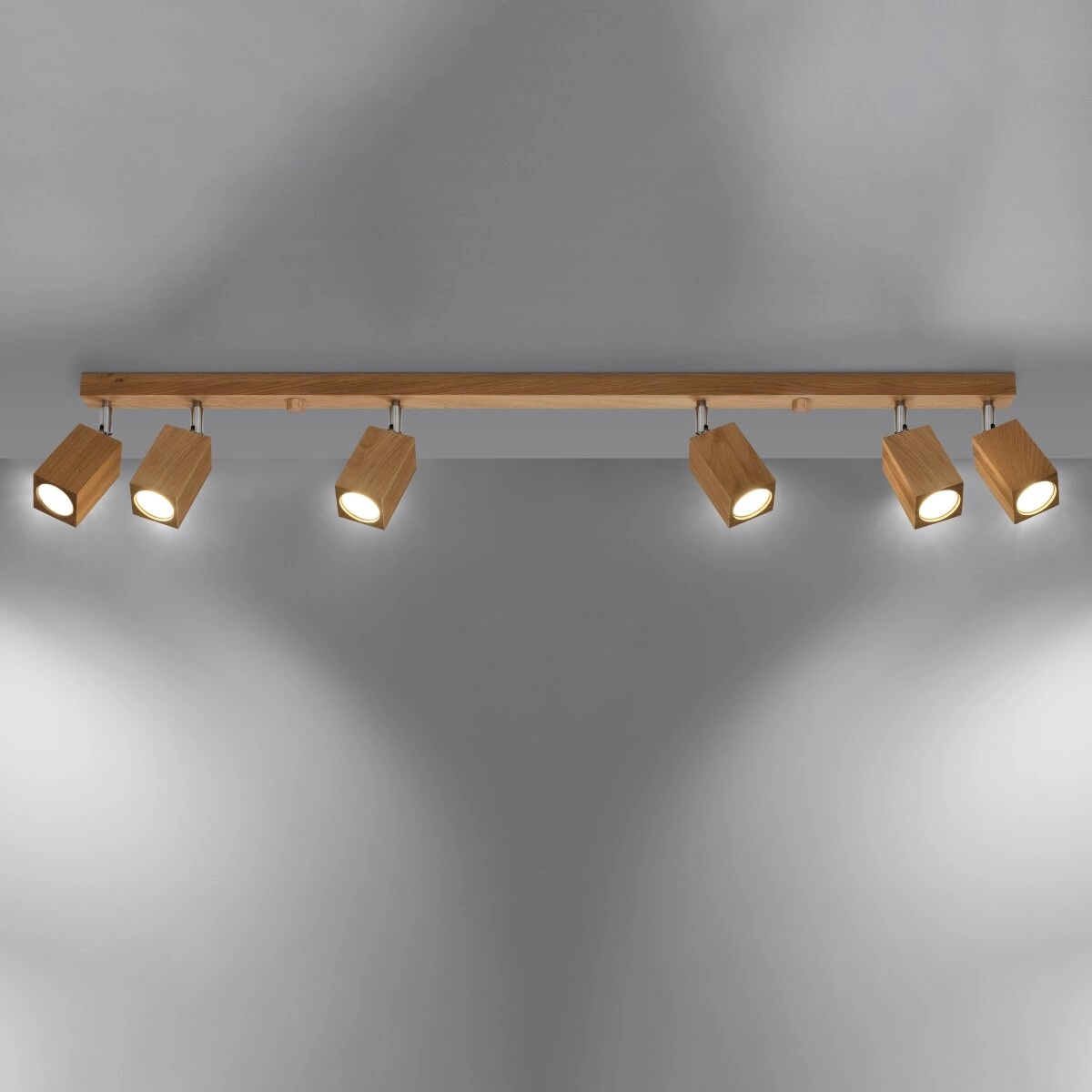 KEKE 6 je stropní svítidlo pro obývací pokoj a kuchyni, které zaujme ušlechtilostí přírodního dřeva. Pečlivě vybraný dub vnáší do interiéru harmonii a pocit útulnosti, perfektně zapadne do moderního i skandinávského stylu bydlení. Dřevěný stropní panel skvěle ladí se světlými stěnami, surovými doplňky a minimalistickým nábytkem, čímž vytváří jednotný a originální charakter ve vašem domově.