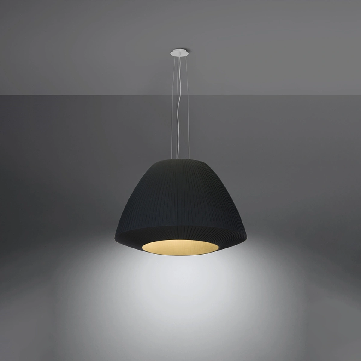 Lustr BELLA 60 černý od značky SOLLUX LIGHTING je elegantní, moderní stropní svítidlo o průměru 60 cm a výšce 138 cm, vybavené třemi světelnými body. Vyrobený z odolné oceli, skla a textilu, zaujme jemným, matným povrchem v hluboké černé barvě. Tento lustr do obývacího pokoje a jídelny skvěle spojuje minimalistický design s funkčností a poskytuje rovnoměrné osvětlení i větších prostor.