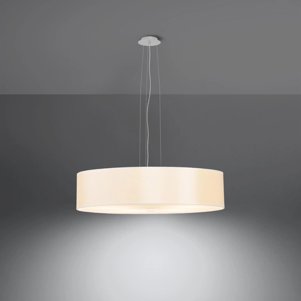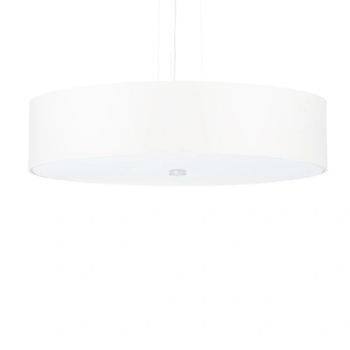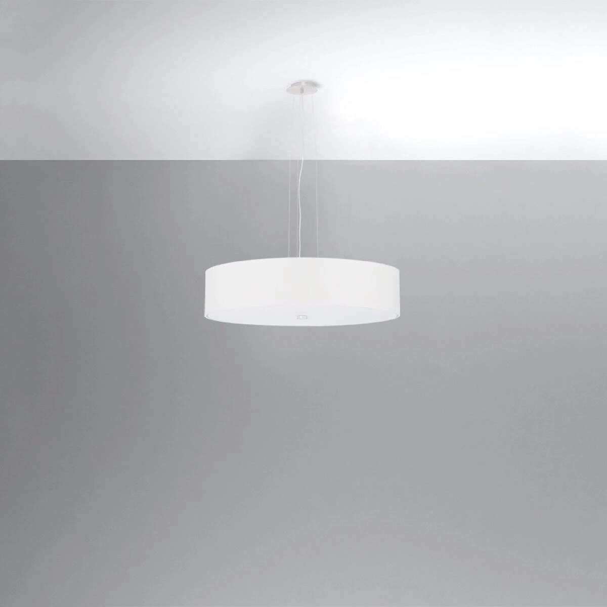 Lustr Sollux Lighting Skala 50 bílý je moderní stropní svítidlo, které spojuje jemnost textilu, pevnost kovu a křehkost skla. Se šířkou 50 cm a výškou 102 cm nabízí pětipaticová konstrukce intenzivní a rovnoměrné osvětlení prostoru. Tento lustr do obýváku a jídelny vyniká cylindrickým tvarem a univerzální bílou barvou, díky čemuž se perfektně hodí do minimalistických a moderních interiérů.
