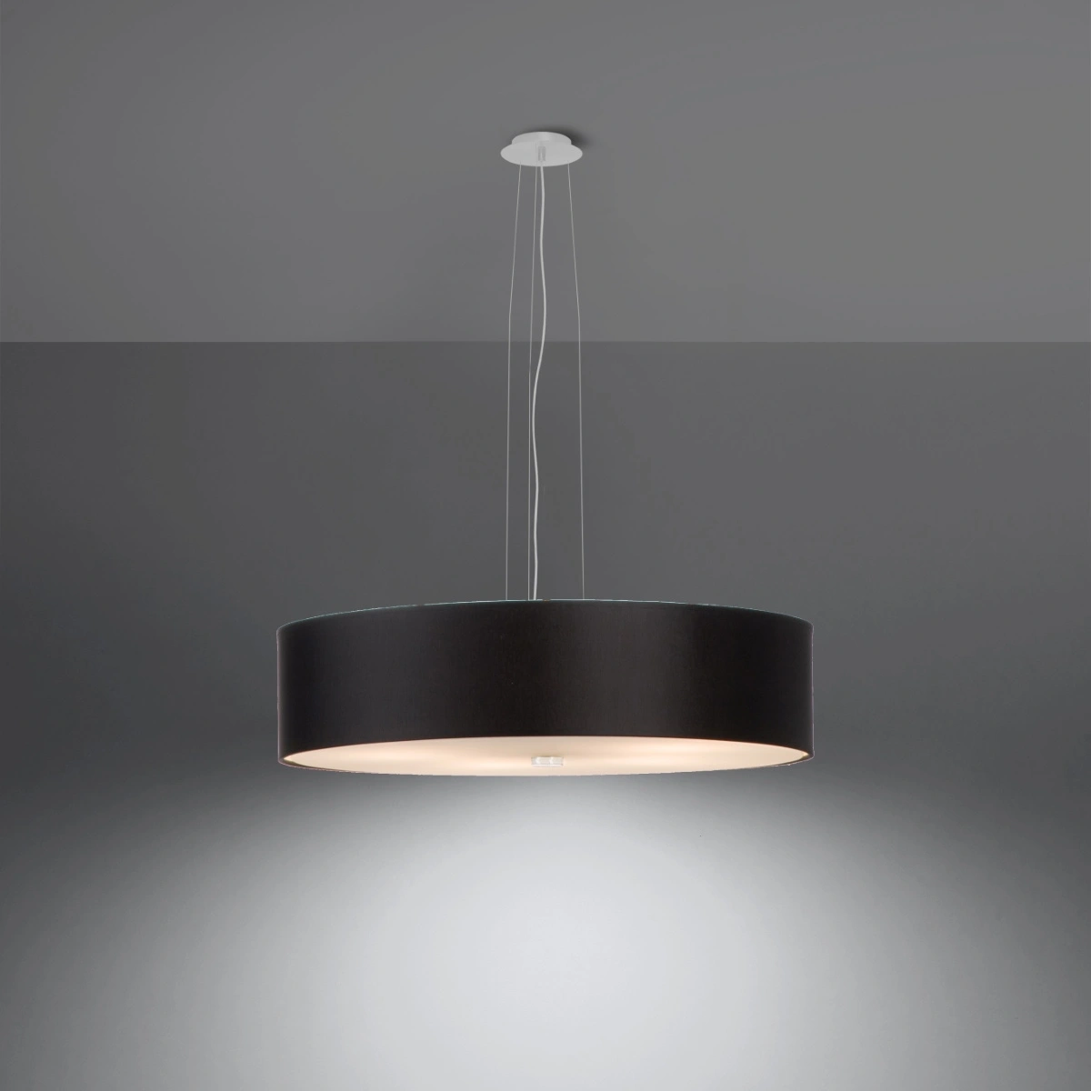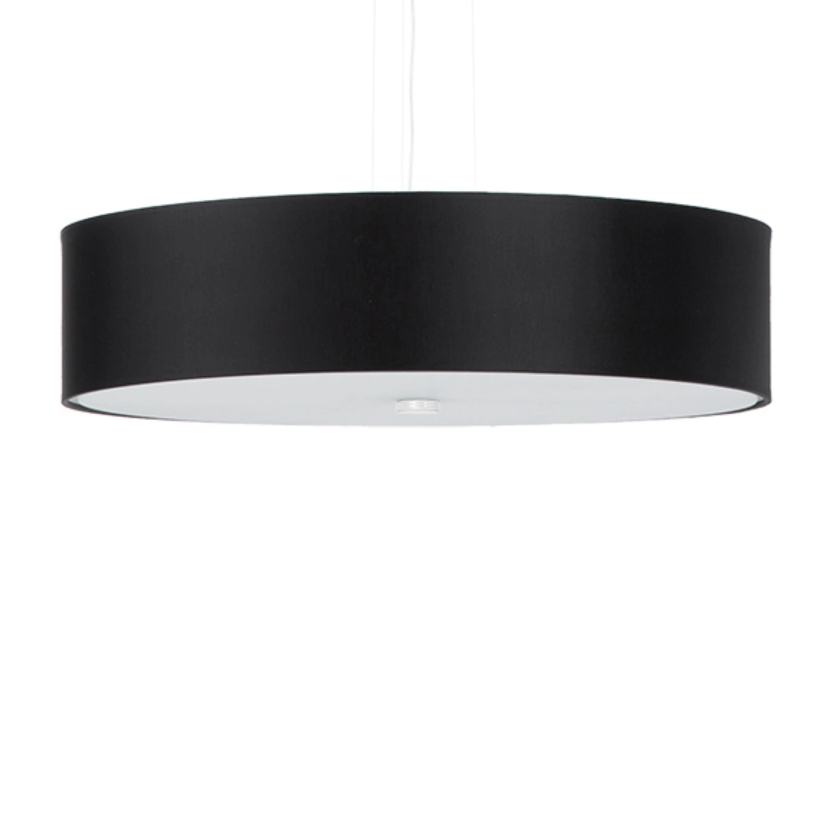 Moderní lustr Skala 50 černý od SOLLUX LIGHTING je elegantní stropní svítidlo o šířce 50 cm, vyrobené z kombinace kovu, skla a textilie. Je ideální do obývacího pokoje a jídelny, vyniká minimalistickým válcovým tvarem a hlubokou černou barvou. Díky pěti světelným bodům s paticí E27 poskytuje rovnoměrné a efektivní osvětlení i větších prostor.