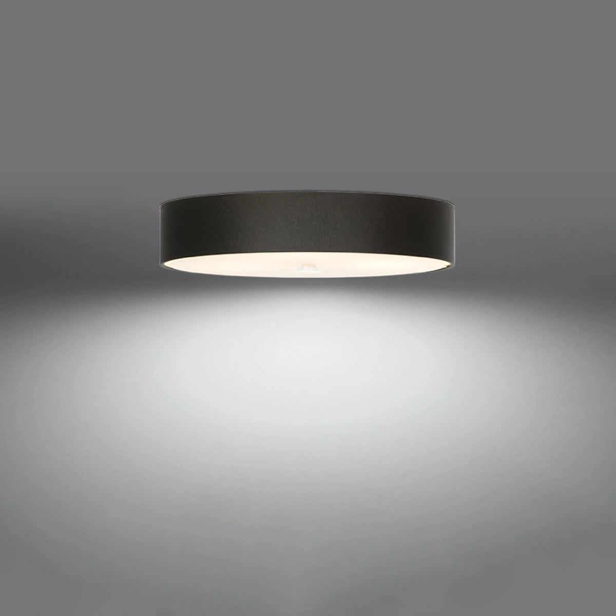 Stropní svítidlo kulaté černé SKALA 60 od značky Sollux je moderní stropní lampa s působivým průměrem 60 cm, vyrobená z kombinace textilu, skla a kovu. Tento model disponuje pěti zdroji světla s oblíbenou paticí E27, což umožňuje široký výběr žárovek a snadné přizpůsobení intenzity osvětlení podle vašich potřeb. Čistý geometrický tvar a univerzální matná černá barva zajišťují, že stropnice SKALA 60 perfektně zapadne jak do obývacího pokoje, tak do kuchyně či ložnice.