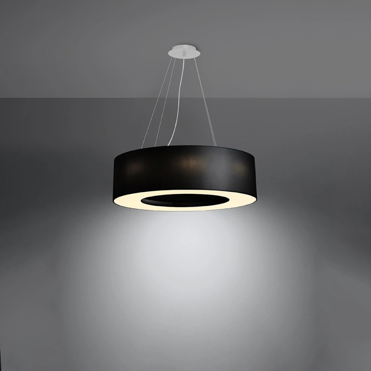 Saturno 70 je závěsná lampa, která skvěle zapadá do aktuálních trendů moderního a industriálního designu. Geometrický, válcový tvar a jednolitá černá barva vytvářejí elegantní celek, který se stane výrazným prvkem každého interiéru. Kulatý tvar lustru opticky sjednocuje prostor a ladí s nábytkem i dekoracemi v otevřených obývacích pokojích i útulných ložnicích. Stylový vzhled osvětlení zdůrazní charakter modernistických aranžmá a zároveň poskytuje široké možnosti při zařizování domova.