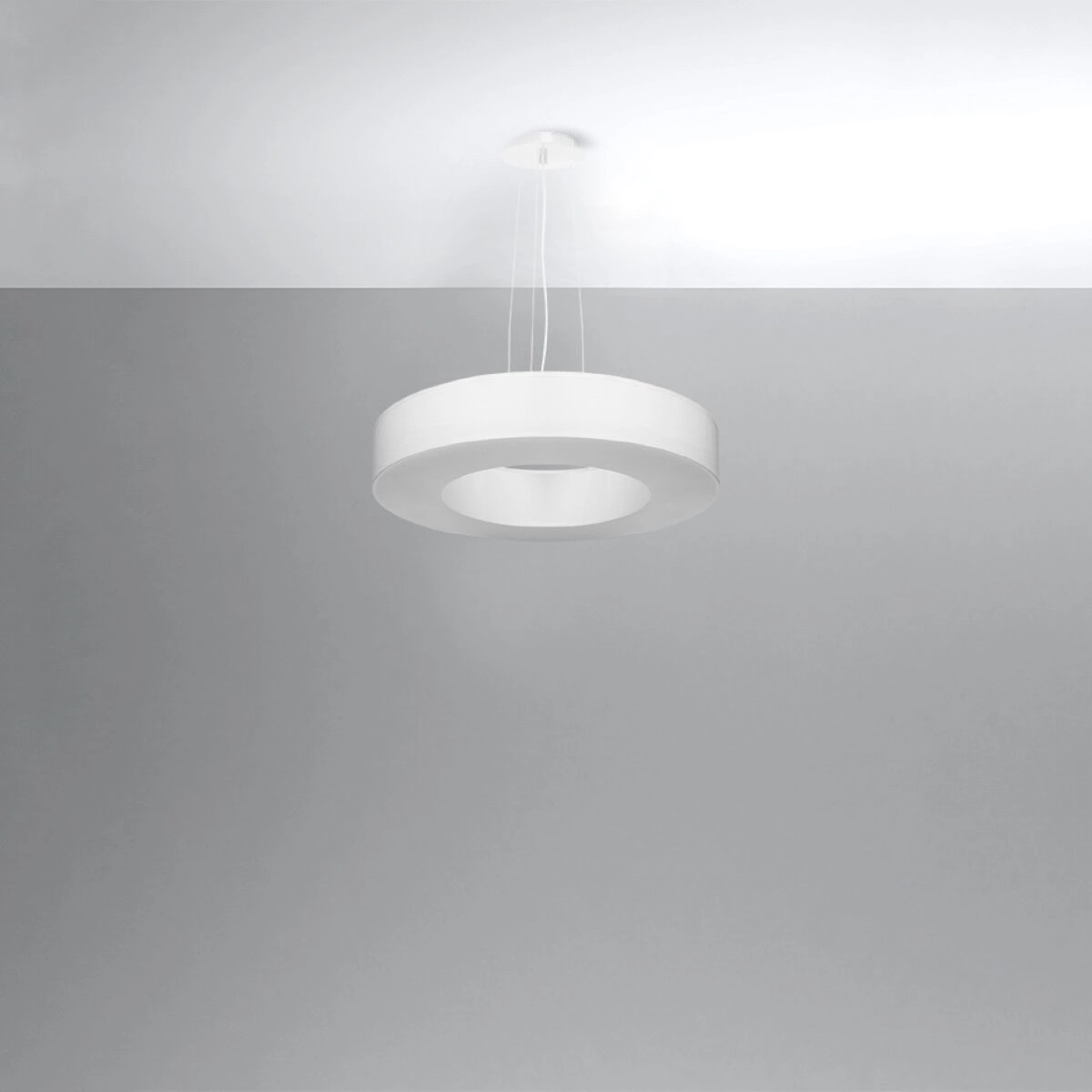 Bílý závěsný lustr Saturno Slim 50 skvěle zapadne do moderních a minimalistických interiérů, kde se stává jemným, ale zároveň výrazným dekoračním prvkem. Jeho geometrický tvar a neutrální bílý odstín zajistí, že lustr vynikne jak ve světlých, skandinávských prostorách, tak i v industriálně laděných interiérech. Univerzálnost designu činí z tohoto svítidla ideální volbu do obývacího pokoje, ložnice, jídelny nebo jako závěsné světlo nad kuchyňský ostrůvek.