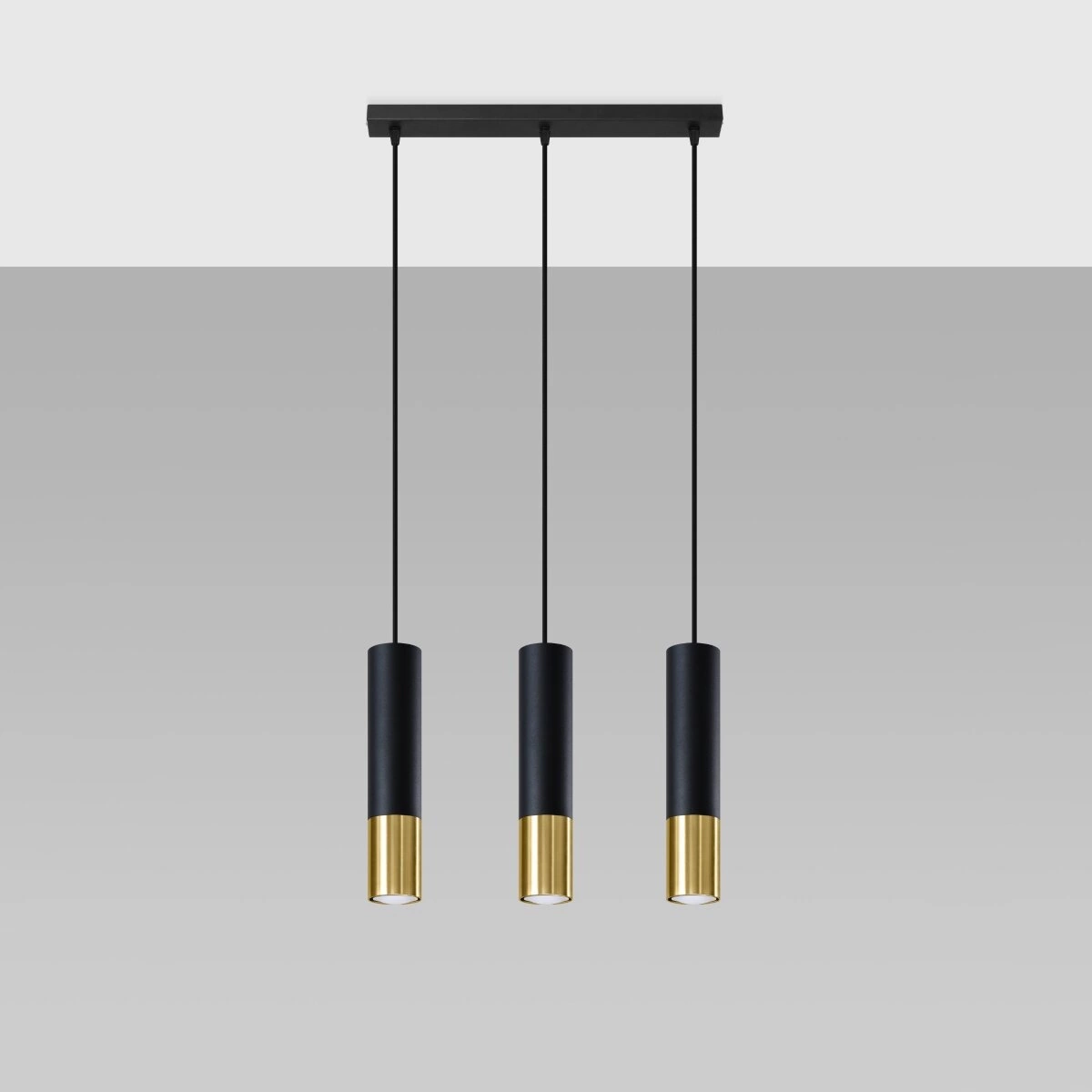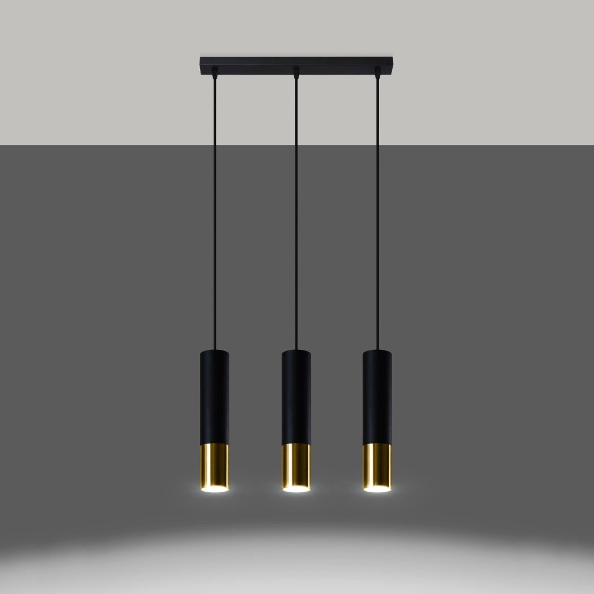 Moderní závěsné svítidlo Loopez 3L od značky Sollux Lighting je kombinací černého a zlatého kovu s výrazným industriálním charakterem. Tři štíhlé tubusy rozmístěné na délce 45 cm a zavěšené až do výšky 90 cm tvoří ideální osvětlení nad kuchyňský ostrůvek, jídelní stůl nebo jako ústřední bod moderního obývacího pokoje. Lampa byla navržena s důrazem na funkčnost, odolnost a estetiku – její univerzální design perfektně zapadne jak do loftových, tak minimalistických interiérů.