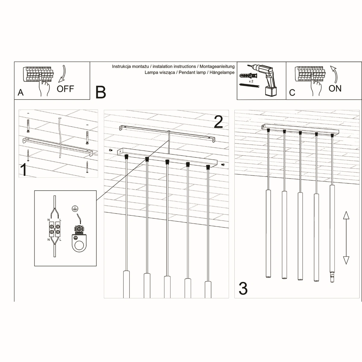 Závěsná lampa Pastelo je vybavena pěti samostatnými světelnými body, které rovnoměrně osvětlí celou délku stolu nebo pracovní desky. Patice G9 umožňuje zvolit žárovky s preferovaným výkonem a barvou světla, takže snadno přizpůsobíte atmosféru místnosti svým potřebám. Výška 90 cm je ideální pro osvětlení jídelního stolu nebo kuchyňského ostrůvku, aniž by omezovala volnost pohybu uživatelů.