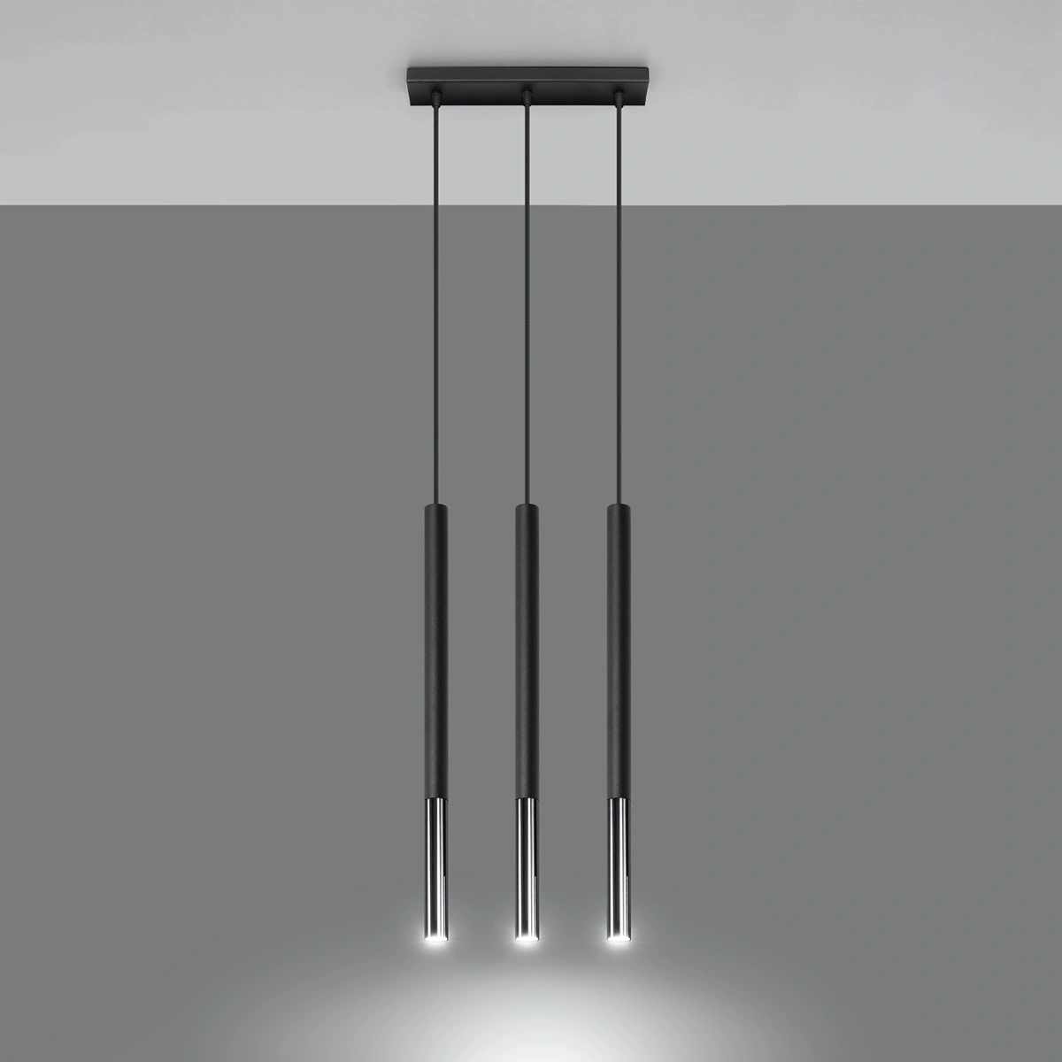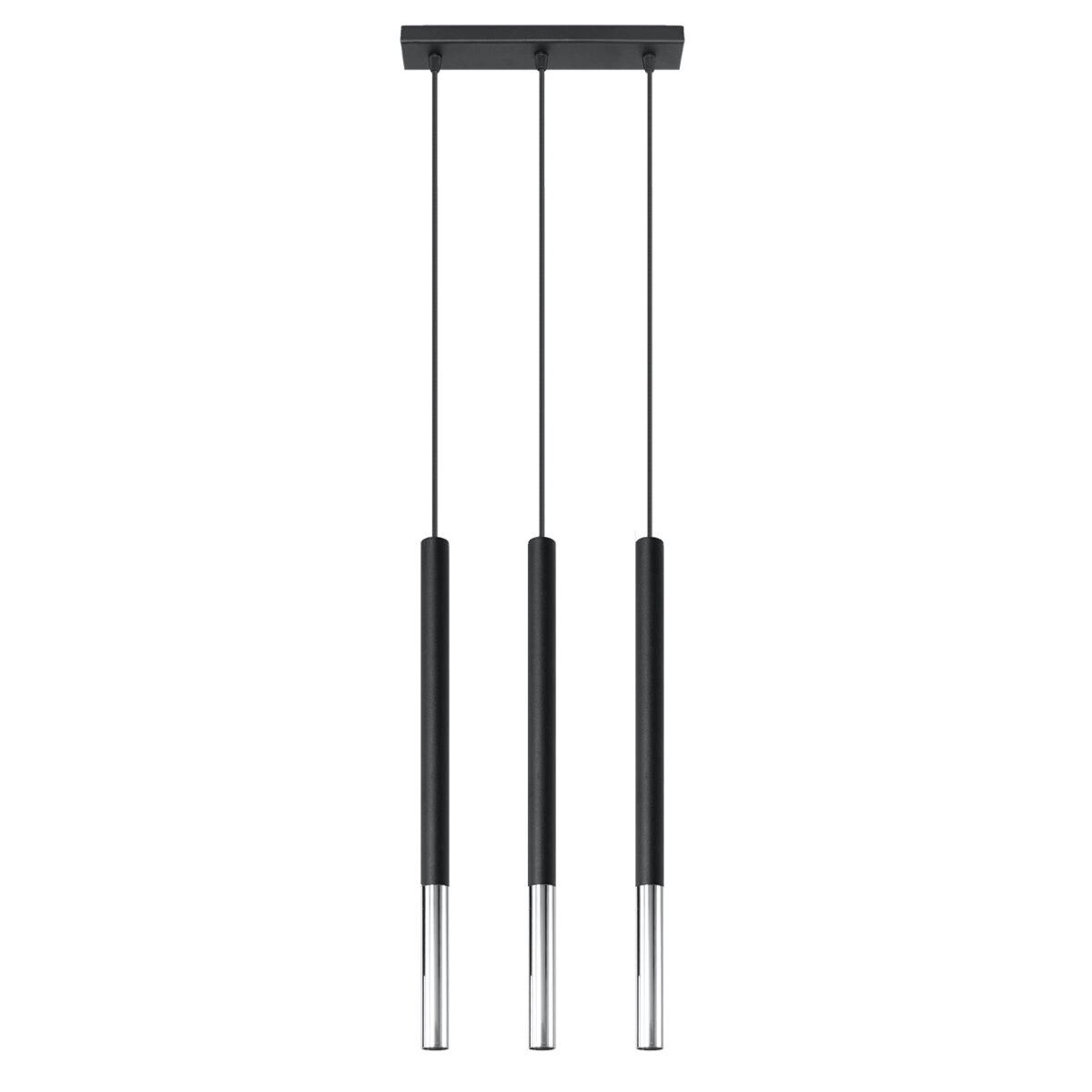Závěsné svítidlo Mozaica 3-bodové od značky Sollux je moderní stropní osvětlení, které spojuje minimalistický design, odolnost kovu a výjimečnou funkčnost. Štíhlý tvar, elegantní provedení v černé a chromu a tři světelné zdroje zajišťují, že tento model se skvěle hodí jak nad kuchyňský ostrůvek, tak do obývacího pokoje nebo nad jídelní stůl.