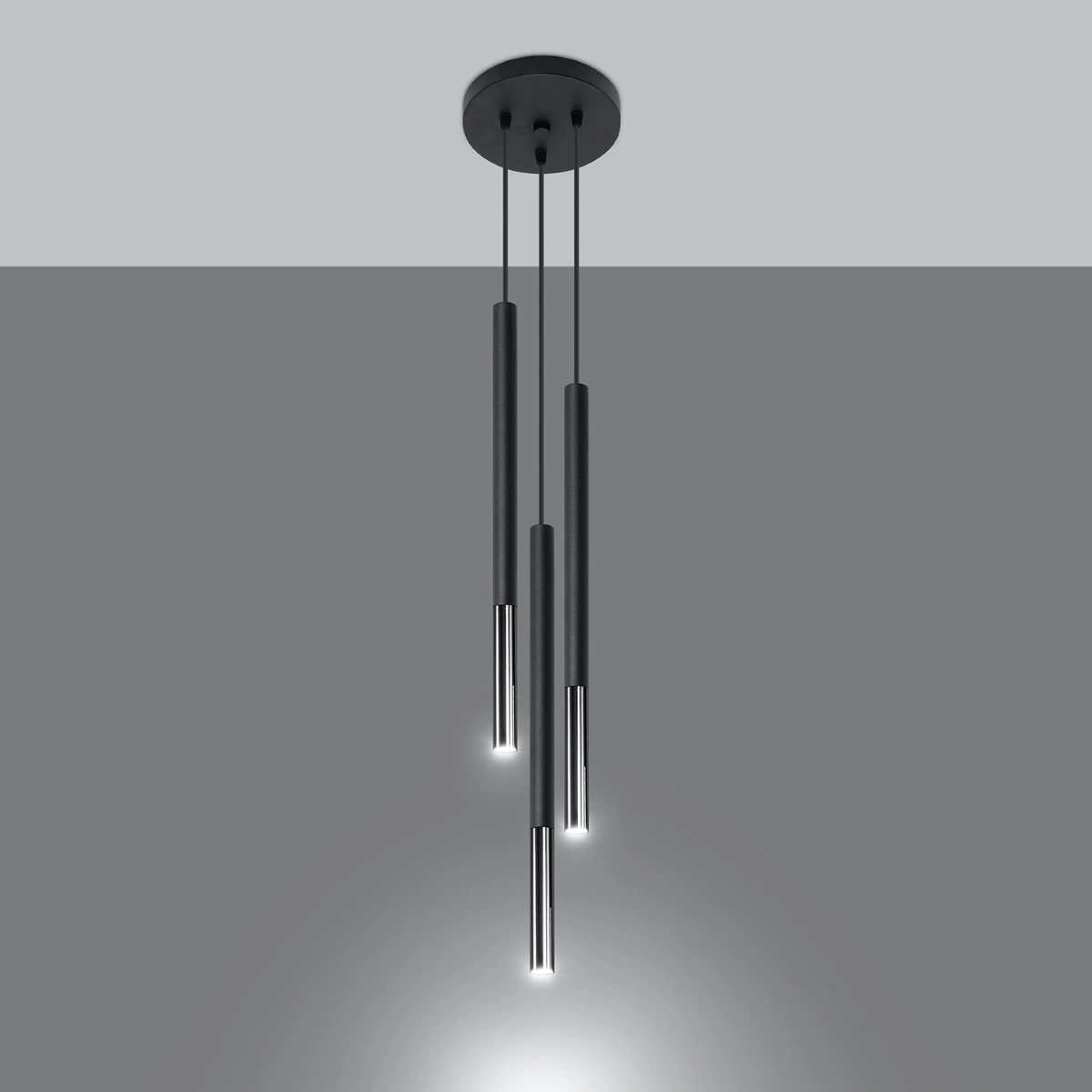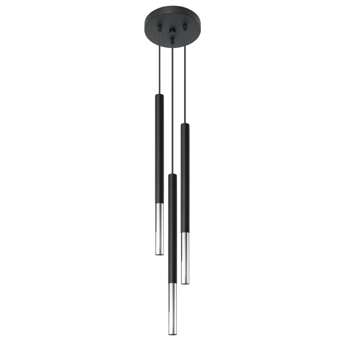 Závěsné svítidlo Mozaica 3-bodové od značky SOLLUX LIGHTING představuje moderní stropní osvětlení vyrobené z kovu v černém a chromovaném provedení. Model s výškou 90 cm a šířkou 20 cm je ideální jako lampa nad kuchyňský ostrůvek, nad jídelní stůl nebo jako lustr do obývacího pokoje. Tři světelné zdroje zajišťují rovnoměrné osvětlení prostoru a podtrhují modernistický charakter interiéru.