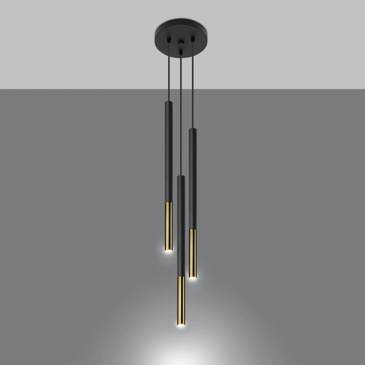 Závěsné svítidlo Mozaica od značky Sollux je moderní, tříbodové stropní osvětlení, které spojuje elegantní černou a zlatou barvu s pevnou kovovou konstrukcí. Kompaktní šířka 20 cm zaručuje, že lampa je ideální jak do obývacího pokoje, tak i nad kuchyňský ostrůvek či jídelní stůl. Tři světelné zdroje G9 poskytují efektní a rovnoměrné osvětlení, které podtrhuje jedinečný charakter každého interiéru.