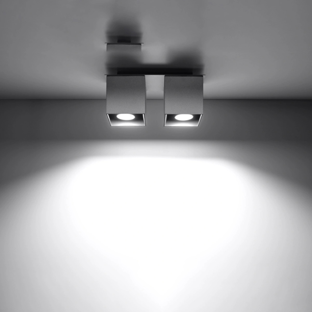 Čtvercový stropní panel šedý QUAD 2 od značky Sollux je moderní stropní svítidlo z hliníku, které zaujme jednoduchým designem a dlouhou životností. Díky dvěma světelným zdrojům GU10 a geometrickému, protáhlému tvaru (výška 12 cm, šířka 11 cm, hloubka 26 cm) je tento panel ideální jako hlavní nebo doplňkové osvětlení do obývacího pokoje, kuchyně či ložnice. Industriální šedá barva a matný povrch skvěle ladí s loftovým, moderním i minimalistickým interiérem.