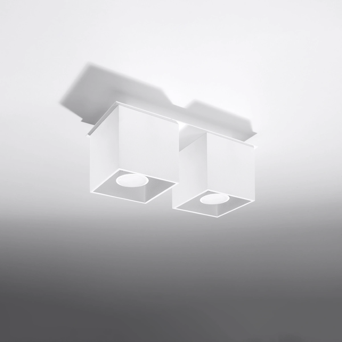 Bílý čtvercový stropní plafon QUAD 2 Sollux je moderní stropní svítidlo vyrobené z odolného hliníku, které spojuje minimalistický design s funkčností. Je navržený pro interiéry jako obývací pokoj, kuchyně nebo ložnice, kde záleží na estetice i praktickém osvětlení. Díky dvěma světelným zdrojům (patice GU10) a univerzální bílé barvě se plafon perfektně hodí do moderních i industriálních interiérů a podtrhuje geometrický charakter místnosti.