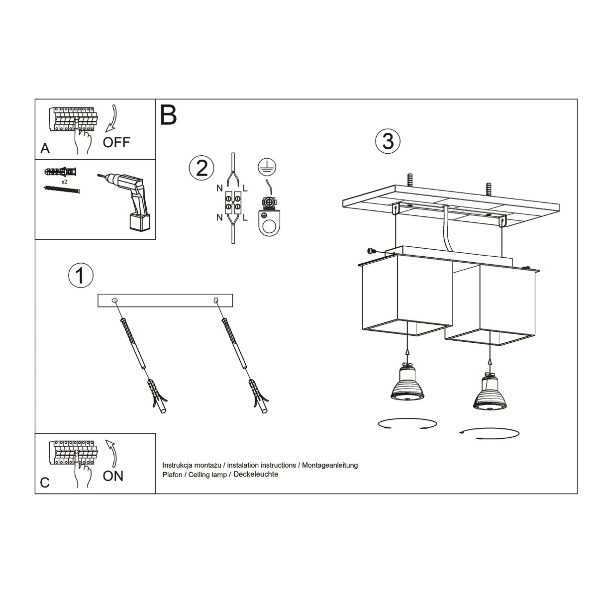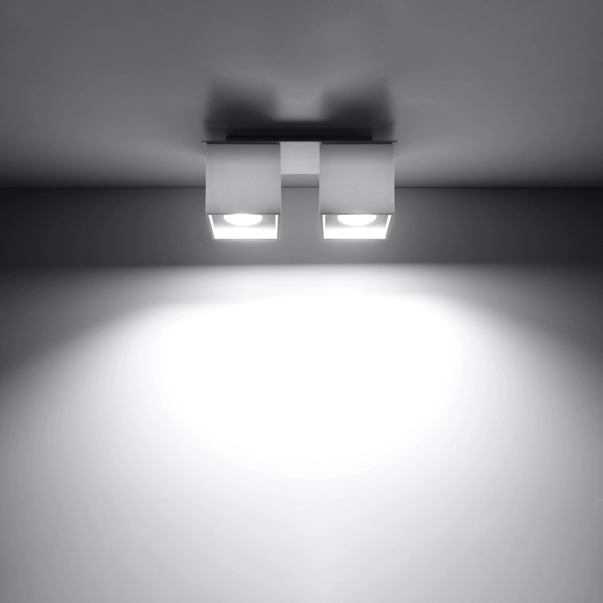 Plafon QUAD 2 Sollux je vybaven dvěma nezávislými světelnými body, což umožňuje rovnoměrné osvětlení místnosti a optimální nasměrování světelného toku dle vašich potřeb. Patice GU10 dává možnost volby preferované barvy a intenzity světla — můžete zvolit LED žárovky pro úsporné a dlouhodobé svícení. Krytí IP20 umožňuje bezpečné použití plafonu v suchých prostorách, jako je obývací pokoj, kuchyně, ložnice, jídelna nebo předsíň.