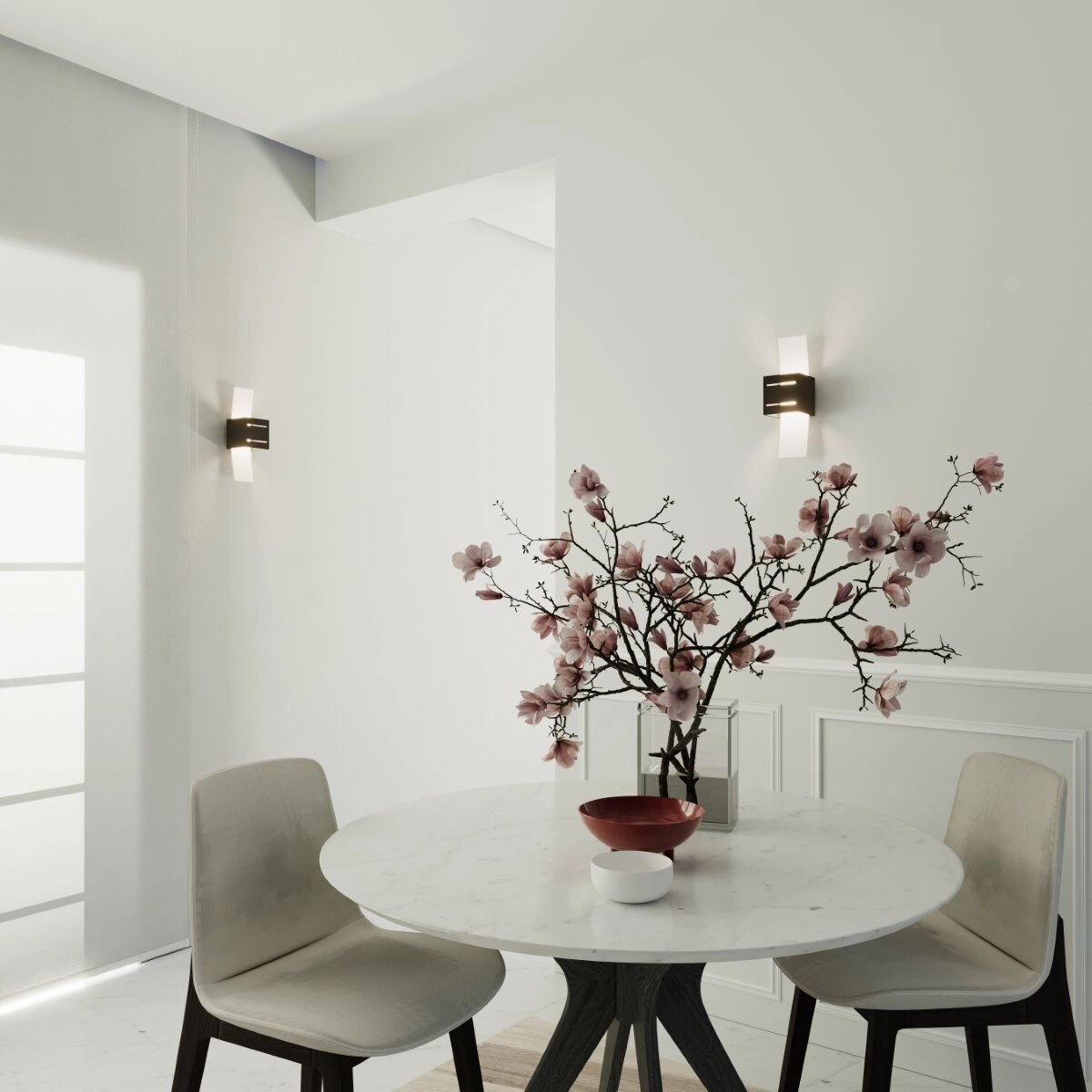 Výrazný geometrický tvar a sytě černá barva zajišťují, že nástěnné svítidlo Loreto skvěle zapadne do moderních interiérů i do prostor inspirovaných industriálním či loftovým stylem. Sklo obklopené kovovým rámem jemně rozptyluje světlo, čímž navozuje útulnou atmosféru jak v relaxační zóně, tak u postele. Je to ideální volba do místností, kde záleží na funkčnosti i estetice.