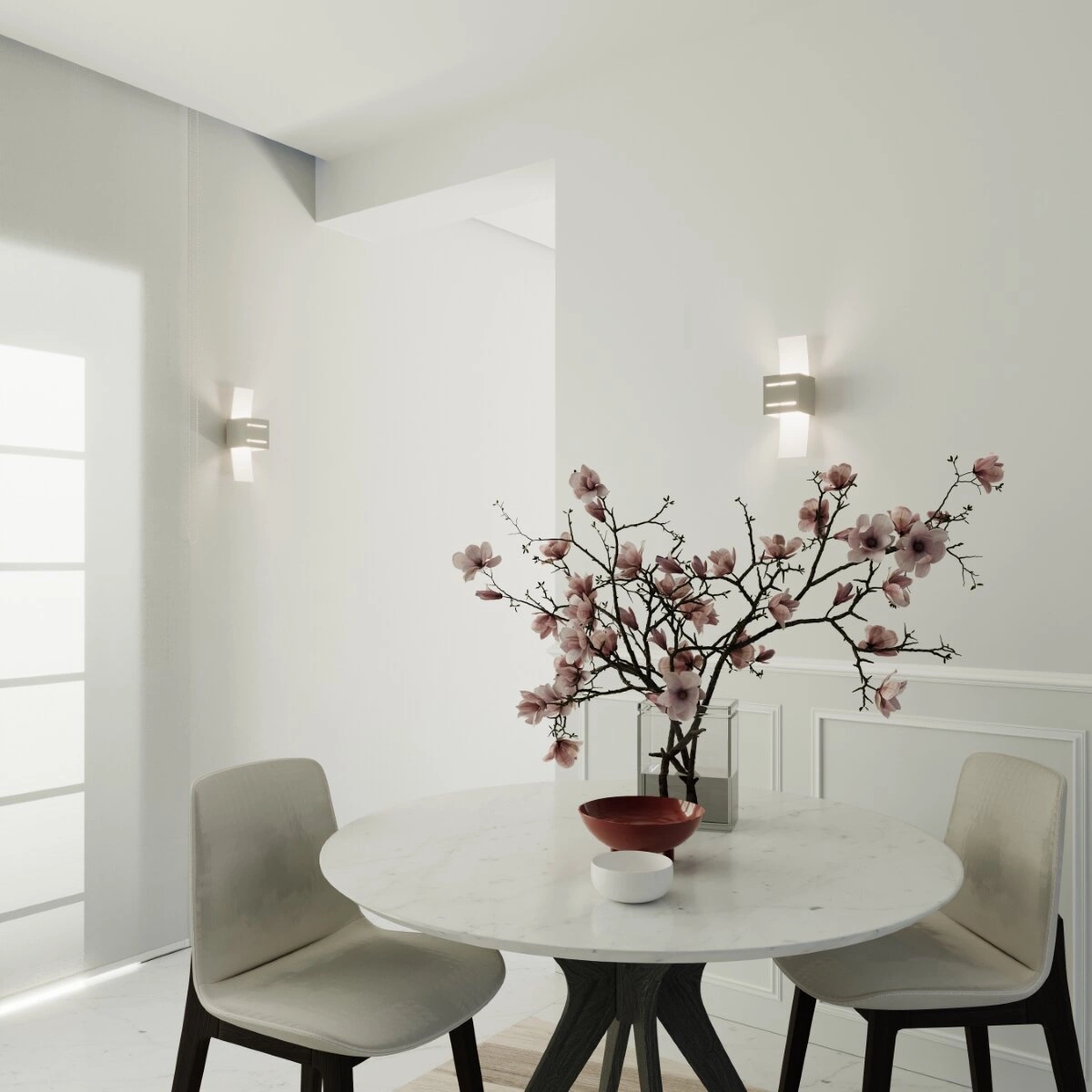 Nástěnná lampa Loreto je lampa, která porušuje všechna schémata. Za pozornost stojí jeho neobvyklý vzhled. Skládá se ze skleněného prvku ohnutého do tvaru lodi, který je uprostřed obklopen kovovou "klecí" se dvěma příčnými výřezy. Díky nim se světlo rozptyluje do několika stran a vytváří zajímavý vizuální efekt
