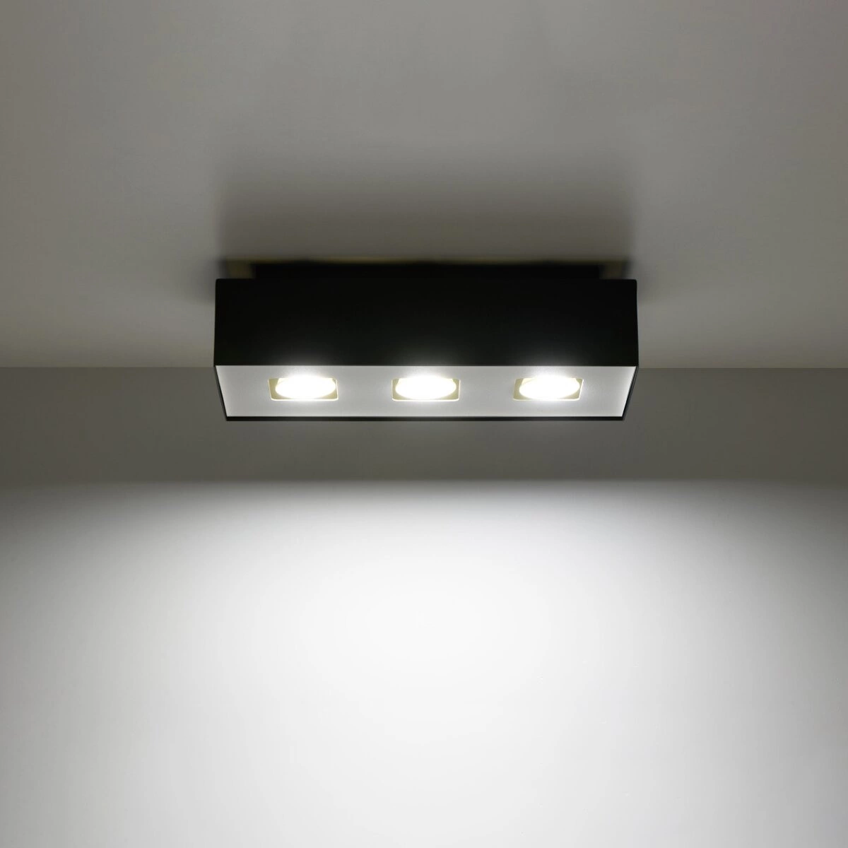 Stropní plafon MONO 3 Sollux jednoduše promění atmosféru každého moderního interiéru. Jeho čtvercová černá forma je působivou alternativou ke klasickým lustrům nebo závěsným lampám – získáte tak nejen funkční, ale i designové osvětlení. Je to skvělá volba pro ty, kteří chtějí vytvořit útulný a zároveň výrazný prostor pro život i práci.