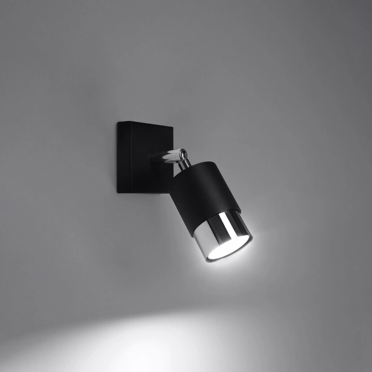 Nástěnná lampa Nero černý chrom od značky Sollux je moderní nástěnné svítidlo vyrobené z odolné oceli, které spojuje minimalistický design s maximální funkčností. Nastavitelná hlavice umožňuje přesné nasměrování světla tam, kde ho nejvíce potřebujete, což činí tento model ideální volbou do obývacího pokoje nebo ložnice. Kompaktní rozměry (výška 16 cm, šířka 17,5 cm, hloubka 8 cm) a elegantní provedení v černé barvě s chromovanými detaily zajišťují, že se nástěnné svítidlo perfektně hodí do moderních i industriálních interiérů.