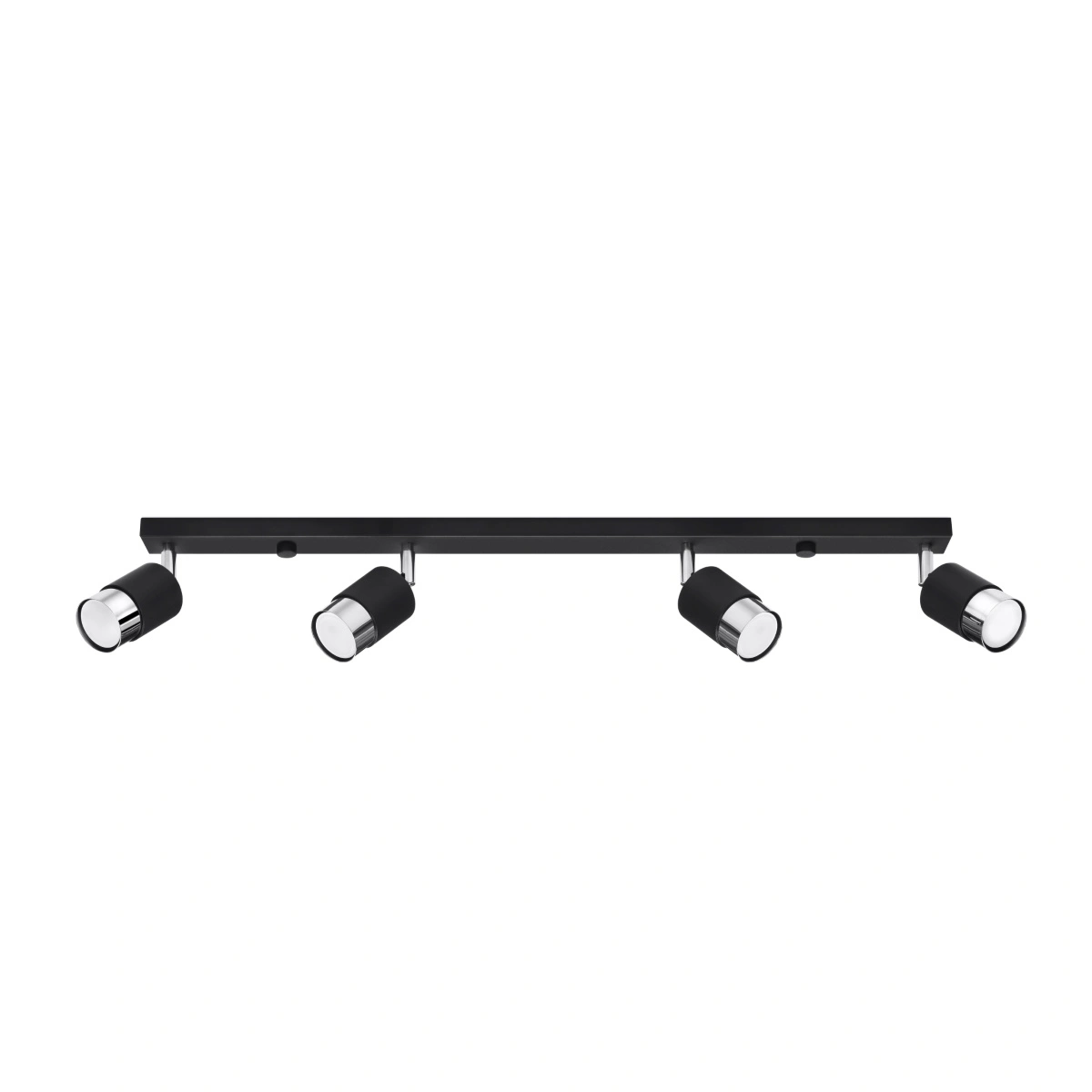 Stropní svítidlo NERO 4 černý chrom od značky Sollux je moderní loftová lampa vyrobená z odolné oceli, o délce 81 cm a výšce 18 cm. Čtyři pohyblivé tubusy v matné černé barvě s chromovanými detaily zajišťují funkční osvětlení v výrazném industriálním stylu. Tento model je ideální jako stropní svítidlo do kuchyně, obývacího pokoje, jídelny nebo ložnice, kde poskytuje nejen působivý vzhled, ale také plnou kontrolu nad směrem světla.