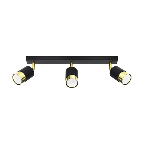 Stropní svítidlo NERO 3 od značky Sollux je moderní lampa o délce 45 cm, vyrobená z odolného kovu v hluboké černé barvě se zlatými akcenty. Díky třem nastavitelným světelným zdrojům typu GU10 tento černý stropní plafon se zlatými prvky perfektně osvítí váš obývací pokoj, kuchyni nebo ložnici. Minimalistický design v moderním a industriálním stylu podtrhne atmosféru vašeho interiéru a jeho kompaktní rozměry (výška 18 cm, šířka 5 cm) zajistí snadné umístění i v menších prostorách.