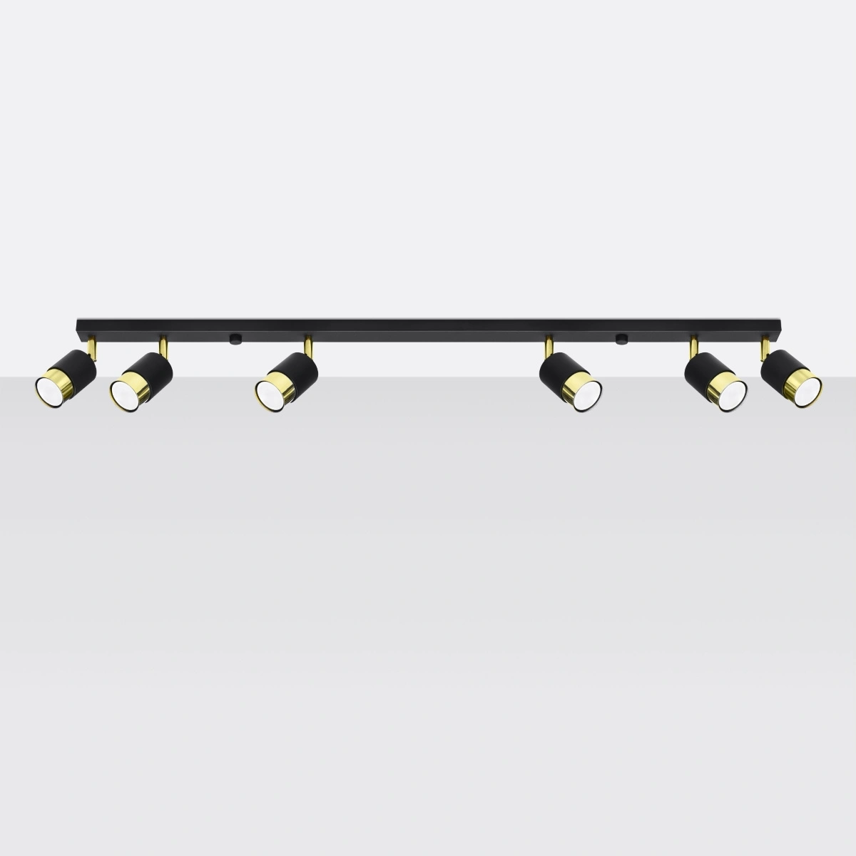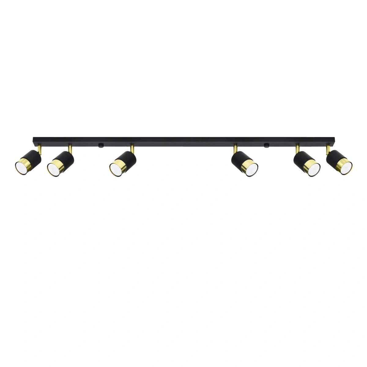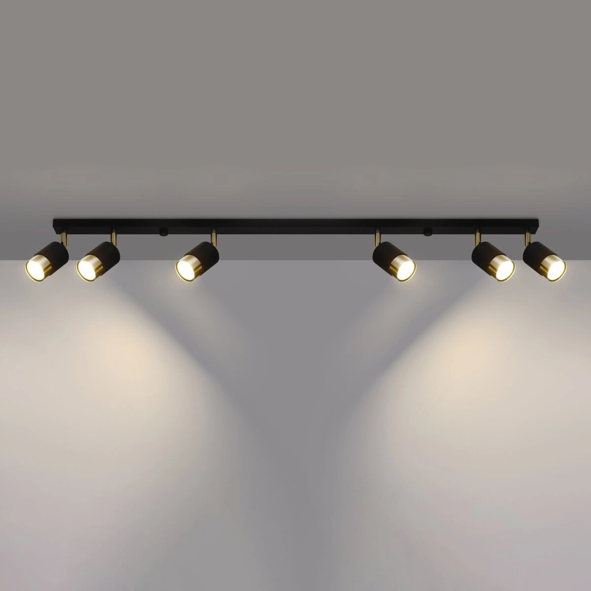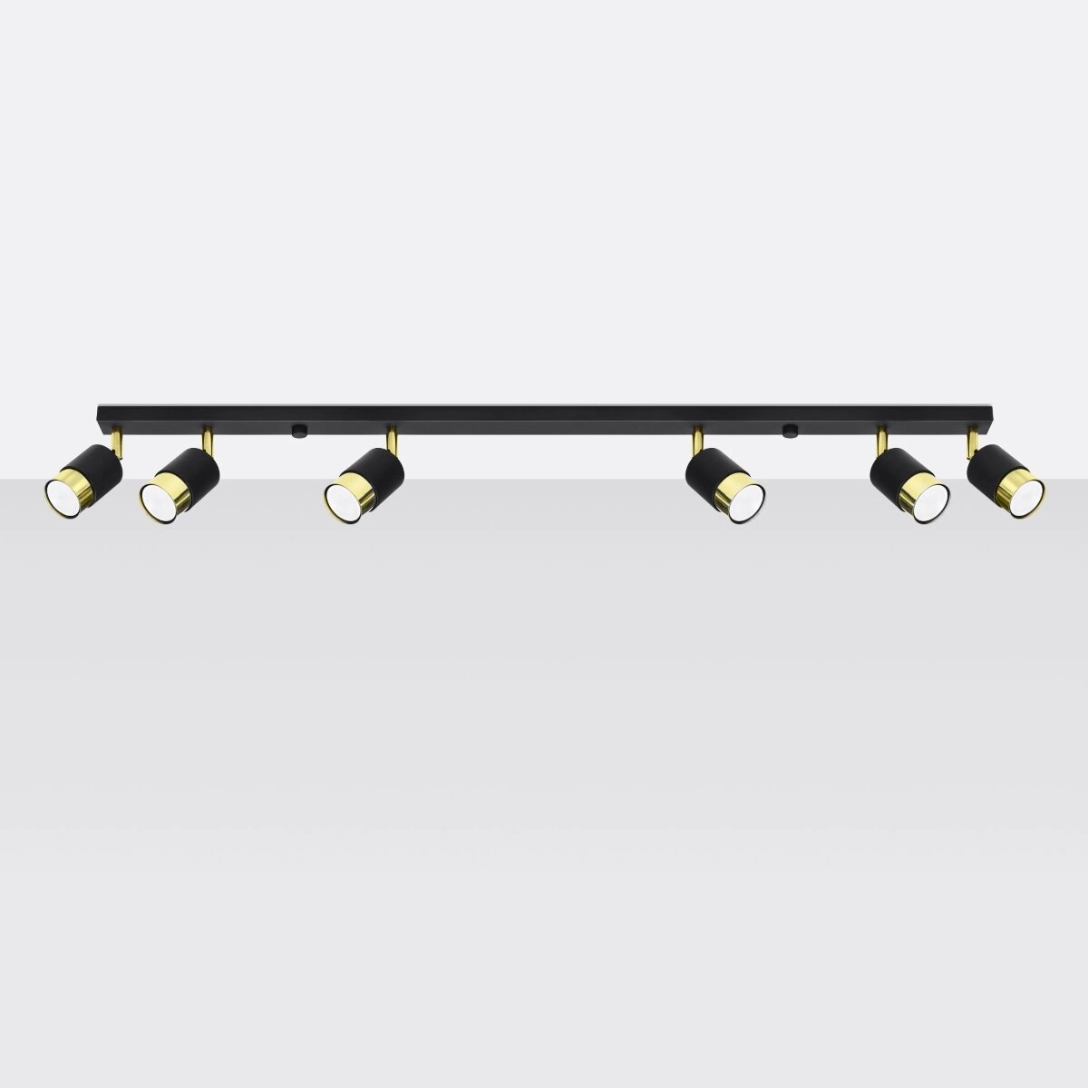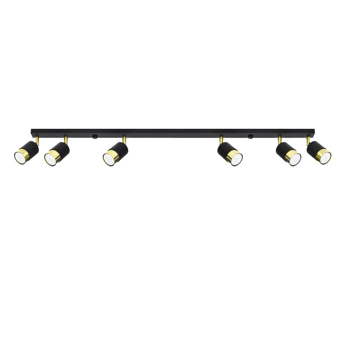 Stropní svítidlo NERO 6 černé zlaté od značky Sollux představuje moderní osvětlení, které zaujme minimalistickým designem a vysokou funkčností. Vyrobeno z oceli v sytě černé barvě s elegantními zlatými akcenty, skvěle se hodí do industriálních a loftových interiérů. Jeho podlouhlý tvar (šířka 117 cm, výška 18 cm) ukrývá šest nastavitelných světelných zdrojů GU10, které poskytují přesné osvětlení jak prostorných, tak útulných místností. Je to ideální stropní svítidlo do obývacího pokoje, kuchyně nebo ložnice, které podtrhne moderní charakter každého interiéru.