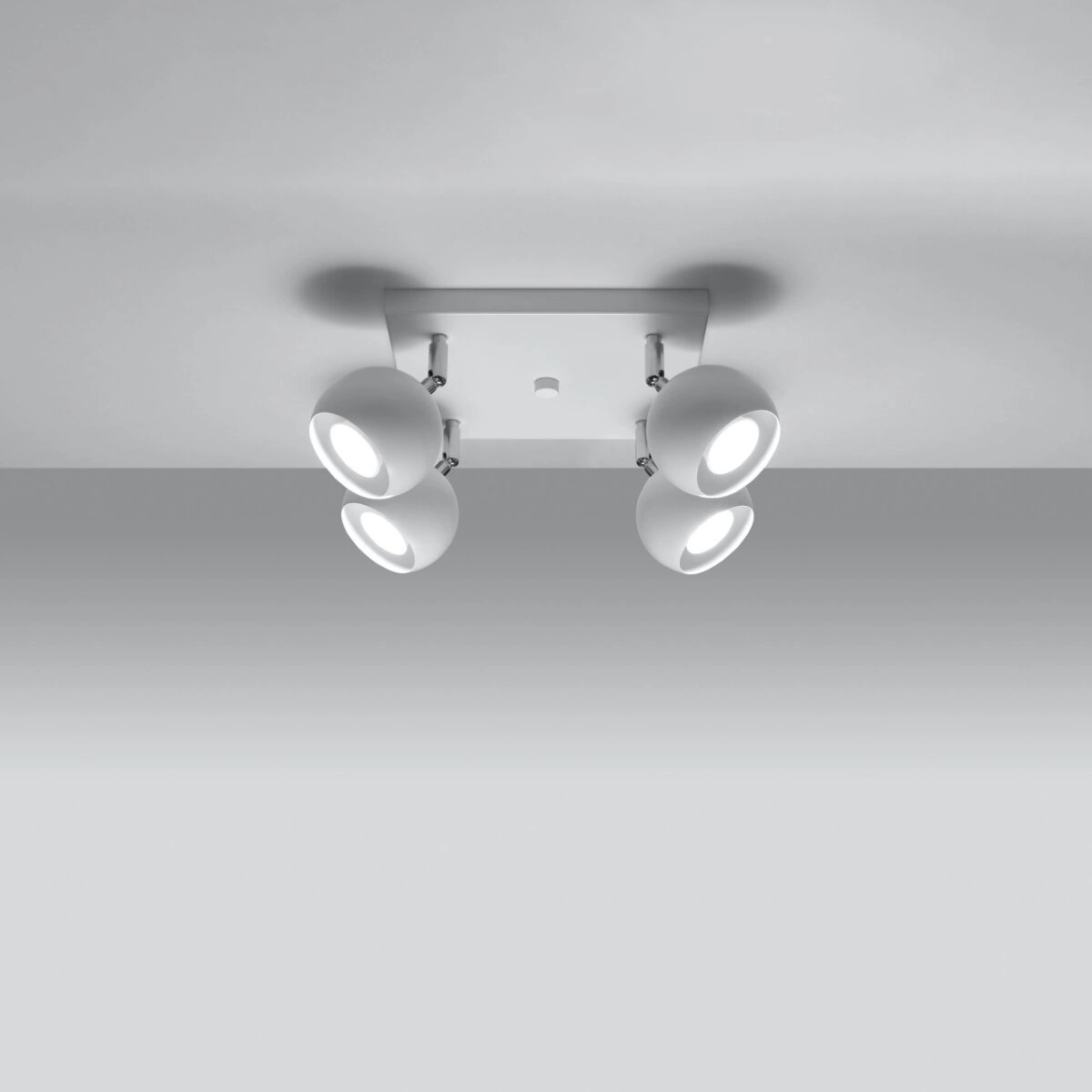 Stropní svítidlo OCULARE 4 bílá od značky Sollux je moderní svítidlo vyrobené z odolného kovu, určené pro montáž do obývacího pokoje, kuchyně nebo ložnice. Kompaktní rozměry (výška 16 cm, šířka a hloubka 25 cm) a čtyři samostatné světelné body zajišťují, že stropní svítidlo perfektně osvětlí jak větší, tak menší místnosti. Bílá barva zvýrazňuje minimalistický charakter svítidla a pevná ocelová konstrukce garantuje dlouhou životnost.