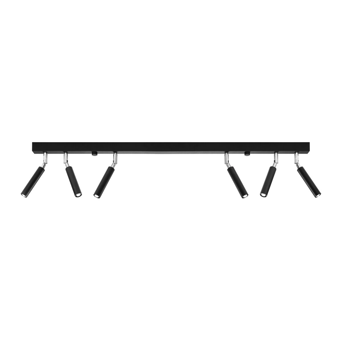 Stropní svítidlo Eyetech 6 černé od značky Sollux je moderní řešení osvětlení, které spojuje minimalistický design s praktickými funkcemi. Vyrobeno z odolné oceli, disponuje šesti nastavitelnými světelnými zdroji G9 umístěnými na štíhlé liště o délce 100 cm. Jeho industriální styl a sytě černá barva skvěle doplní obývací pokoj, kuchyni nebo jídelnu a dodá interiéru výrazný charakter.
